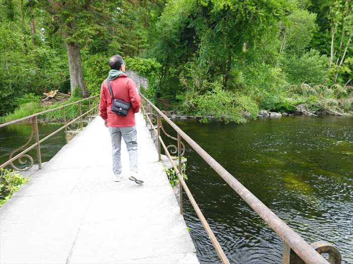 「Turn back towards the bridge and cross it, returning back in to Cong village in a loop walk. You will arrive down School Hill to the duck pond at 0 ' Connor's supermarket.