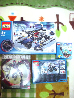 2日はトイザラス行って来ましたvv正月2日目からすごい人です。お年玉片手にした子供達でわんさか。今日のお目当ては「レゴブロック福袋」毎年、買おうかどうしようか悩んでましたが、今年は息子がお年玉で買う!と張り切ってたので買ってみました。3999円で4点入り。結構内容よかったです~vv息子は乗り物系好きなので大当たりかな。約4千円で結構いっぱい入ってました。来年も買おうかなー。・・・って、なんだか家がレゴブロックだらけになってきました。でもパーツ数増えると大きいのが作れて楽しいんですよね~。他にもおもちゃの福袋が沢山あったんですが、がまん・がまん(笑)<HOMEへ戻る>1日1回 ポチッと押して頂くと更新の励みになります♪↓ 人気blogランキングへ
