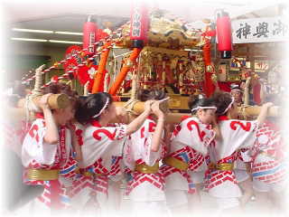 さて、今年もこの時期がやってまいりましたーvv我が地元最大級のお祭「天神祭」一応、日本三大祭の1つに数えられているそうです今日は前夜祭のイベント「ギャル神輿」が巡行されました。でも、あいにくの雨でガッカリ~。いちおうチラッとは見れましたが、祭に雨って嫌ですねー。写真も全然撮れなかったので昨年の分を再掲載ギャル神輿とはその名のとおり担ぎ手が全員「ぴちぴちギャル(死語)」です。しかも、若くて美人さんばっかりです。おじさん必見!ちなみに担ぎ手の選考基準には「米俵2表を天秤棒で担げる事」ってのがありますので皆さんほっそり美人なのに、米俵担げる強者たちですって昨年も書きました~(爆)しかし、明日も明後日も雨ですよー。せめて本宮の25日は晴れて欲しいな・・・(〒_〒)ウウウ 花火と船渡御がぁ・・・天神祭の詳しい解説は→公式HP をどうぞv<HOMEへ戻る>1日1回 ポチッと押して頂くと更新の励みになります♪↓ 人気blogランキングへ