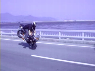 映画『バイカーボーイズ』を見たのですがすぐ、カッコイイものに影響される(?)おれうおおおおストッピーやりて~~~~~っとバイトに向かってる最中やってみたwできたwwwような気がするw浮いたけど進んだのかは微妙でした(´・ω・`)~バイトも終わり~タカとコンビニでジャンプたち読みして別れた後前方の信号が黄色に!?行けるか!?っとアクセルを開くが、後ろにピーポー君いるやんけ!?あわてて急ブレーキフロントブレーキばっか使うクセがある俺は・・・・・ジャックナイフwwwwしかも今までに出したことの無い角度wwwww↑確実にコレより上がってたwあ~グッバイ免許証(&人生w何とか前転は避けて着地心臓バクバクでバックミラーでピーポー君を見る・・・・・が、運良くピーポー君はシカトしてくれましたwその後、言うまでも無くトロトロ走り・・・・・いやぁ~死ぬかと思ったよ(いろんな意味でw