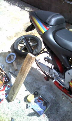 今日は朝から父さんと一緒にディスクローター修理してましたwパッドが減りすぎてボロボロになったローターパッドが受け金まで削れてました元の厚さと比べると減りすぎw旋盤があれば削れるんだけどそんなもの無いのでチェーンを外してグラインダーで回転研磨w完全ではないけどツルツルになりましたw裏表磨いて次は前輪前輪は一度ブレーキパッドを変えたのでまだ若干残ってましたがジャックナイフやらストッピーの練習やらしたのでローターに傷が・・・・後輪と同様、木材で浮かせてグラインダーで削るqwメーターワイヤーも切れたし変えなきゃなぁ・・・・その後、試験走行ブレーキの違和感も無くいい感じwグラインダーの微妙なザラツキもブレーキを使うと消えましたwでも所詮は応急処置だから早く変えないとなぁ・・・明日から合宿行ってきま~す携帯に映画も音楽も詰め込んで準備OK!!3日もバイトからおさらばでひゃっほいwさぁ~あそぶぞぉ!!