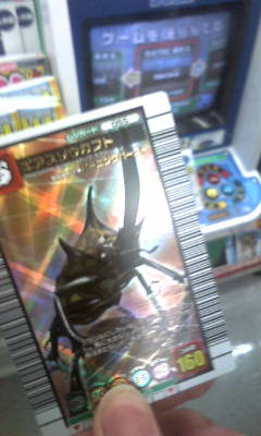 今日は月に一度の召集日?味千デーでしたまぁラーメン食って駄弁っただけですwその後、近くのローソンへ・・・・タカがジャンケンで負けたヤツ、ムシキングやろうと言い出したwみんなでジャンケンするも・・・・タカが負けました('・ω・‘)早速コイン投入プリズムの強そうな害虫が出てきました(何時の時代もプリズムはレア感あるねwタカの生死をかけたバトル動画結局スグにまけましたorz