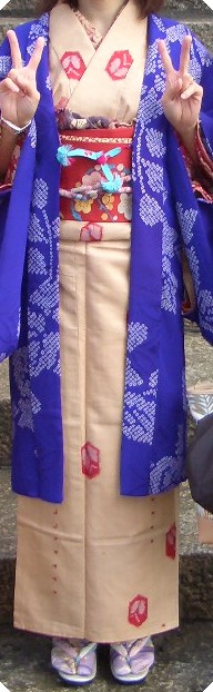 このベージュの着物、袖の長さは一尺六寸五分だとか、友人のお母上が畳んだときに計ってくれましたv