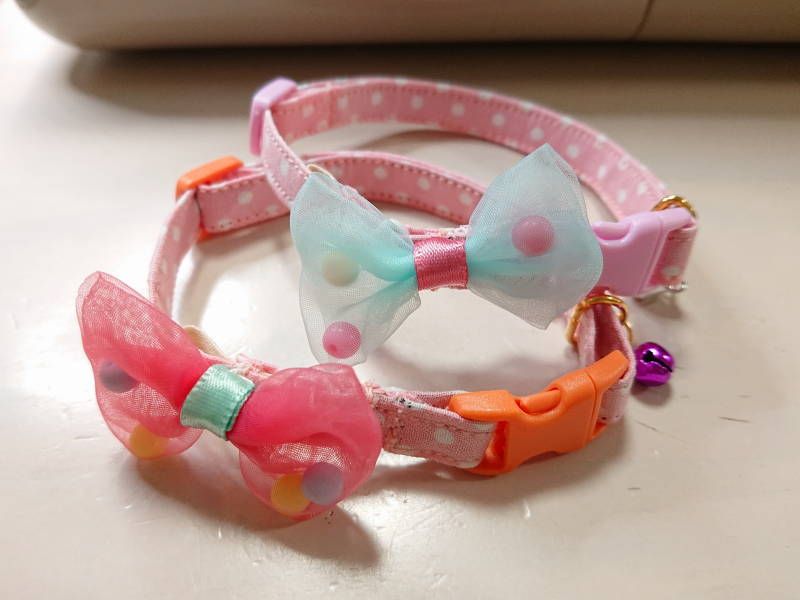 今度はガラッとイメージ変えてキャンディポップカラーの首輪を作ってみました★