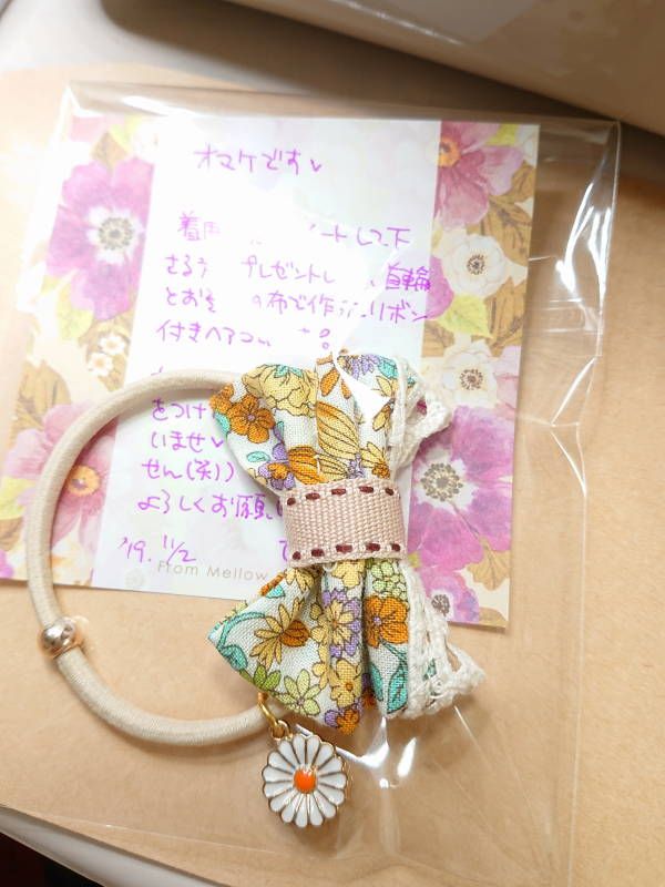 なお、一度に何点かまとめて買ってくださったり、リピーター様にはタイミングによってシュシュを入れさせていただくこともありますので