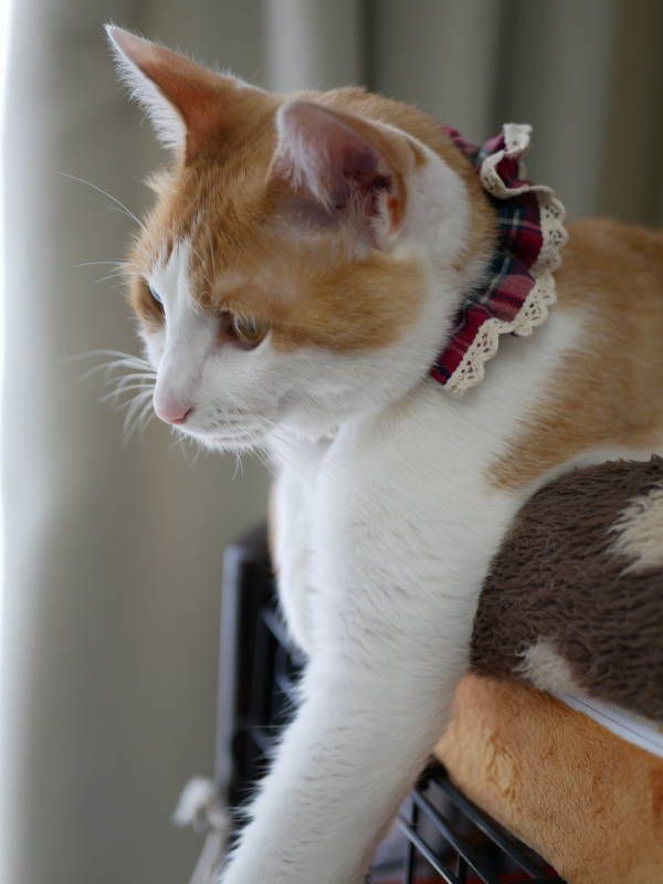 子猫の首輪もいずれは・・・とは思っていたのですが、こんなに早くその時が来るとは(笑)。実は首輪を購入してくださった方が子猫を迎えたばかりだというので試着をお願いしちゃおう!・・・と、即興で作ってみました。サイズとかはネット情報で(笑)大体割り出して・・・首輪初めての子猫ちゃんにはバックルより軽い感じのスナップで…シュシュでも細めで…・・・とかいろいろ考えながら・・・。 でも、布が思ったより硬いし、そのくせミシン上手く滑らないしで苦戦…。先ほど受取人さまからメッセージで、茶色い方を2か月半の子が着けて、一番小さいところのスナップでピッタリだったようです~(*´▽`*)赤い方はちょっと小さいのかな~今後、茶色い方のサイズベースでまた作ってみたいと思います最後に最近のお気に入り1枚を(笑)▼ (なんか催促しながらあくび中ですw)