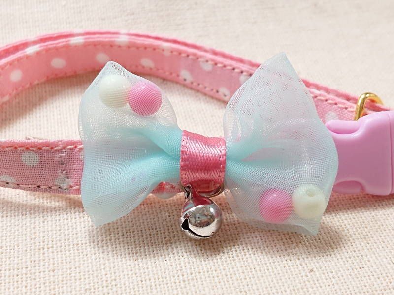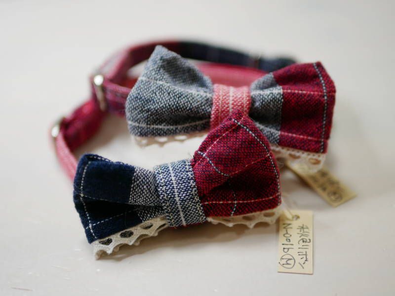 やっとできました~~毎回同じデザインの写真アップしてるんで飽き気味ですがw今回のノーマル首輪はほとんどデザイン揃えて、鈴は青で統一です♪バックルとDカンは高級感あふれるゴールドです★(実際いちばん高級(笑))第1段ほどではないけど、少しだけ色味に差はありますね。↑コレはちょっと赤が多いタイプかな。いい位置につければこんなにカワイイ。▲コレは失敗例w ちょっとリボンが下にかしいじゃいました(><)・・・なので、完成品はちょっとリボン成形し直してます★▲わかりにくいかもしれませんが、手前の一つだけリボンが小さめです。大きくしては見たものの、結局このサイズが一番安定感あるかも(^-^; ▼リリカ姐さんが大きいのは気になる・・と申しておりましたwリボンを後ろに着けるとこんな感じ♪なお、裏側から見るとこんな感じですよ~あと、新チャレンジで今回は『スナップタイプ』も作ってみたのです。ちょっと、鈴とかリボンの配置が違っちゃいましたが(><)アジャスタータイプとは仕様が変わるので、ちょっとサイズが小さめです。なので、こんな使い方もできます(笑)↓ニャンコとお揃いとか私が着けるとなんか魔法少女みたいだわ(戦隊ものといいたいところだが大目に見てw)(=ω=.) とりあえず今日か明日あたりからまたminneにアップしますのでよろしくお願いします~(*´▽`*)