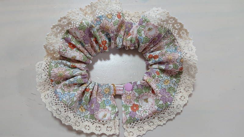 こんばんわ(*´▽`*)ちょっと間が空いてしまいましたが、一応毎日コツコツと首輪作っております~今はリボン首輪と同じ生地でシュシュタイプを。作るたびに新しい発見があって、どんどん進化していく感じがとても楽しい( *´艸`) シュシュとかリボンに付けている『レース』があるんですけど、私コレの名前、つい最近知ったのですw『トーションレース』っていうらしいのですけど、知ってました?!だからはじめはどこで買っていいのかもわからずにウロウロ(ネットを)。白状すると、『レース』と『フリル』の違いも知らなかったんですよぅ!( * ›ω‹ ) 最初は¥100均で買ってあったストックがあったので、何も考えず布に挟み込んで縫ってたんですね。するとこんな感じになります↓(過去の写真)ところが、最近ネットで買うようになって実際に届いてみたら挟み込むほどの幅がなかったんです!最初は「失敗したー」って思ったんですけど・・コレをあとから縫い付ける形にしたのが↓これです。お?なんかいい感じじゃない?!無理して挟み込むより、全体が見えてうんといい感じになりましたこれも幅が狭いレースだったら逆にうざくなるかもしれないけど・・・幅が狭いレースは控えめでかわいいので(そして何より安い!(笑))、今後はこれで行こうと思います♪ *おまけ*たしか今回の記事で紹介してるのはこのレースです↓コットントーションレース綿トーション生成り 10mm 価格:83円(税込、送料別) (2019/10/3時点)10㎝単位で売ってるお店が多いのですが、ここは1m単位なのでとても安い!幅広だとこんなのもあります♪↓コットントーションレース(綿トーション生成り) 20mm 価格:122円(税込、送料別) (2019/10/3時点)
