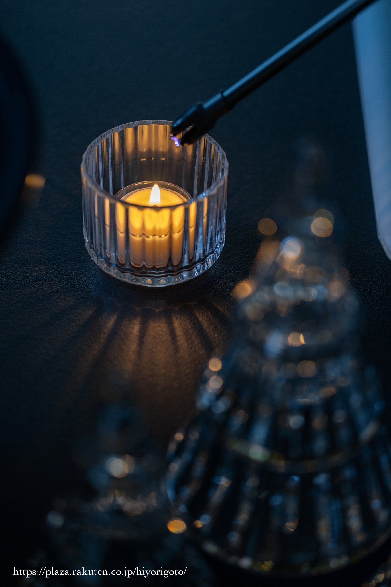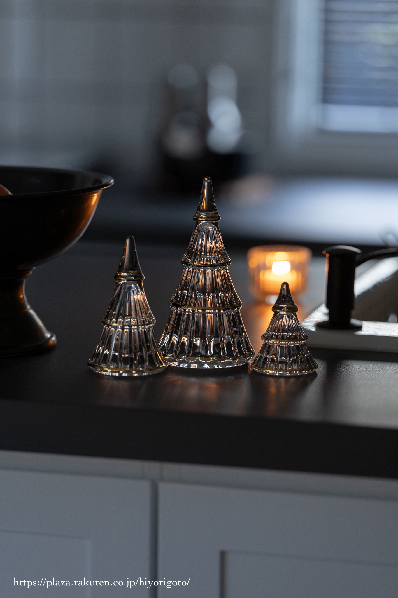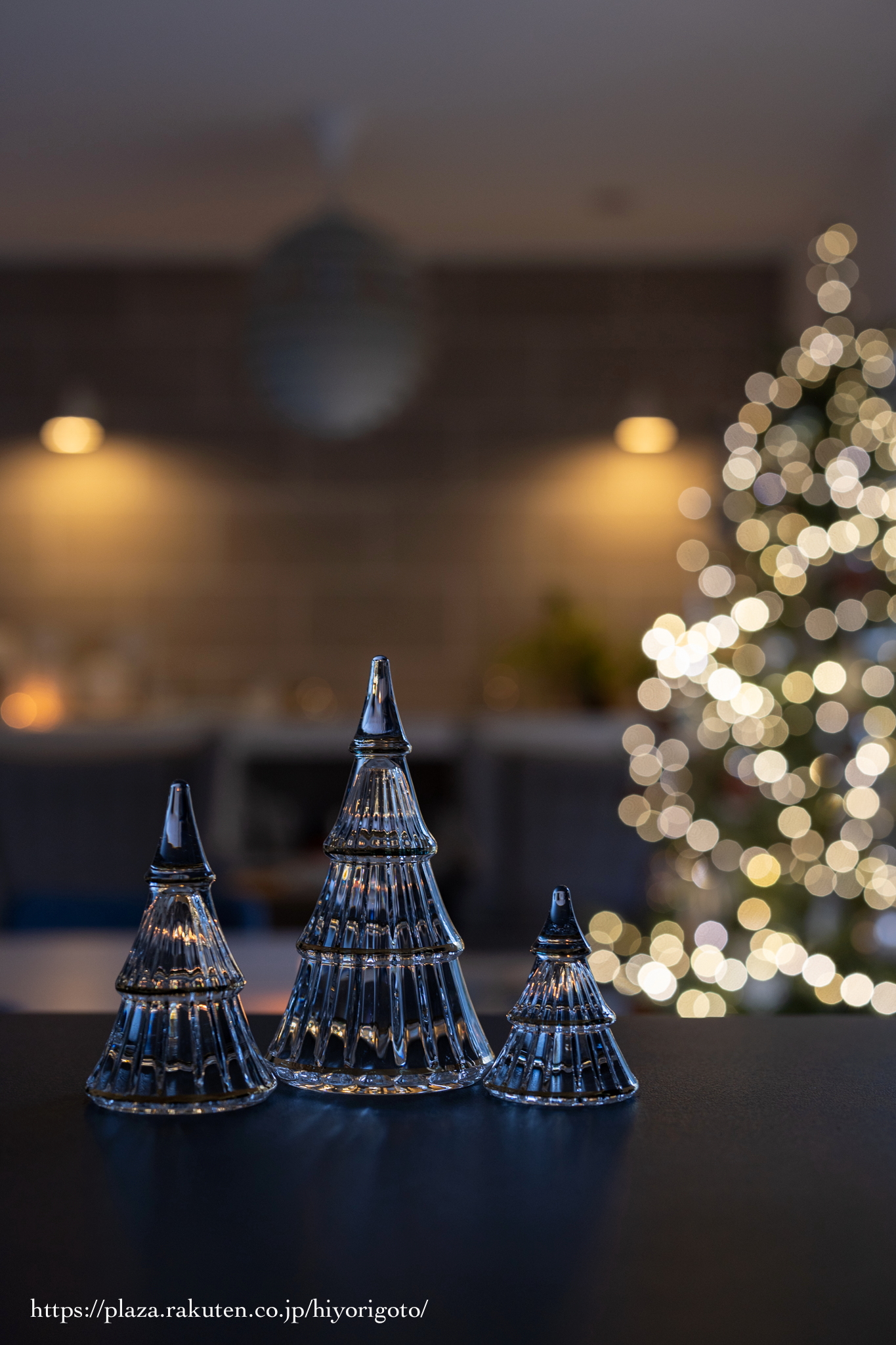 キャンドルの灯りが透けるガラスツリーもキラキラ。