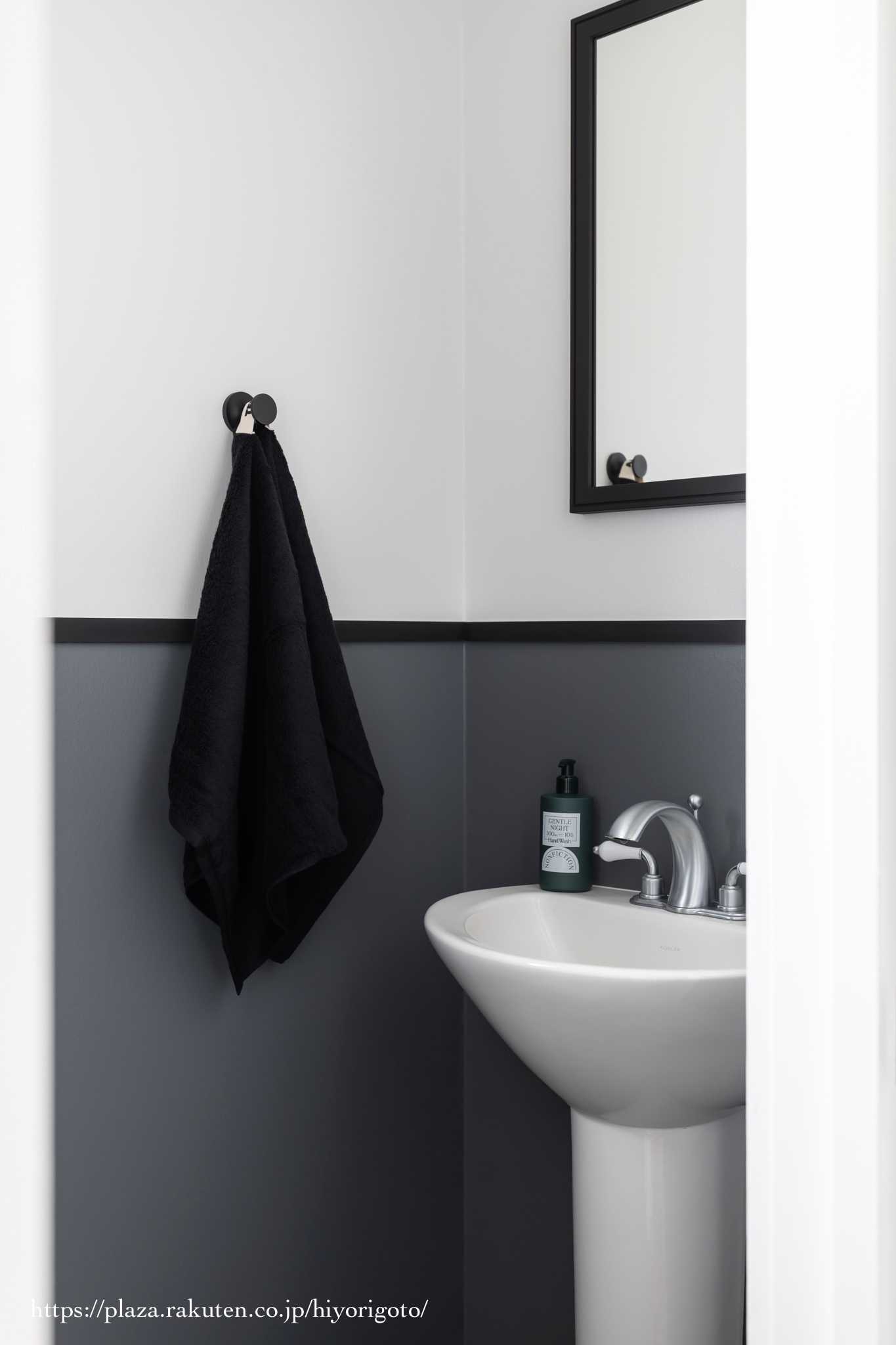 黒の無地で、真ん中にフックが付いているタオルって
