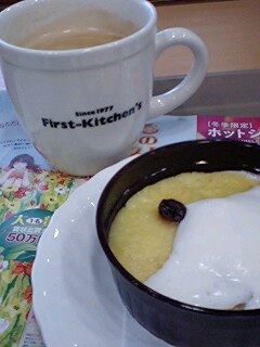 不景気のせいであまりカフェにもそうそういけないのですが、それでもおいしいものを食べたいという欲求は耐え難くなるべく安くておいしいものを食べていきたいと思っています。そんな中、いままでどこか馬鹿にしていたファストフードのスイーツですが、今後はちょっと見直していこうかとおもってます。昔に比べてだいぶ味もよくなってきたようだし。ファーストキッチンは昔からおいしいコーヒーを出していたファストフード店のせいか、スイーツもなかなかのもの。期間限定のパンプディング、ウマー!(((( ;゜Д゜)))確かに容器はプラスチックなんですが、味はなかなかのもの。コーヒーもおいしい。あんまり落ち着く雰囲気ではないのが残念ですが、ファストフード店の中では一番好きです。
