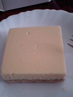 豆乳チーズケーキを買ってみた。わかりづらいけれど下の方にブルーベーリーのソースが入っています。味は普通のチーズケーキといわれてもわからないほど。・「豆チーズ(チーズスフレ)」国産大豆の豆乳使用