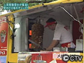 セガレ君との昨日短いデートで書きこ忘れやんナガシマリゾートの入り口横で発見した。中京TVに8/16放送PSに出てきた屋台やん大人気トルコ料理のケバブの屋台ってなもんで。確かトルコ料理って世界3大料理の一つなんだよねアイスクリームチョー有名。ビロ~んって伸びるのなケバブはナンの皮みたいなのにチキン&キャベツ&トマトをサンドだよでこれおぉ~TV見た見たってノリで思わず買っちゃった。でででお味の方は・・・的ですわ。うん。ありありセガレ君体調とほざきながらも少々ご賞味。だってさ。おいしいってさ。あんた体調はもうね訳がわからん。見ためほどしつこくなく、意外にあっさりだったよ。だから体調が少しなセガレ君も食べれたのかな。たぶん結構おすすめだってばよ。好き嫌いのあんまり無い味だと思うよ。誰でも普通に食べれそう。だから、ありあり。8/29~30日に愛知県江南市の’すいとぴあ江南’ってとこで同じ日に放送した、屋台が10店舗集まってさPS屋台村ってのをやるみたい。時間が有ったら行ってみたらステキだと思うよ。絶対他の店もだと思うしさ。