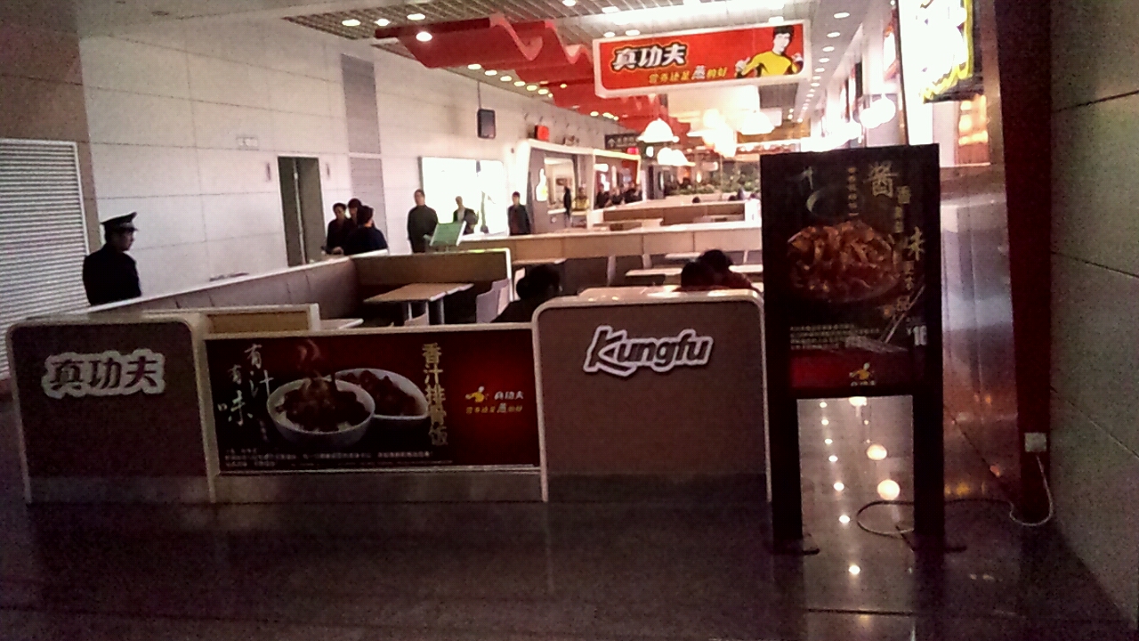 リニアモーターカーの駅の横にある食堂街。ブルースリーの看板のとこ、おいしそうなんだけどな~どうなのかな~