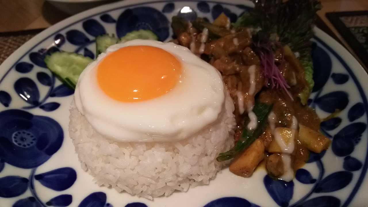 塩分大目な感じもしますが、ライスと玉子と、具とかといい感じになっています。