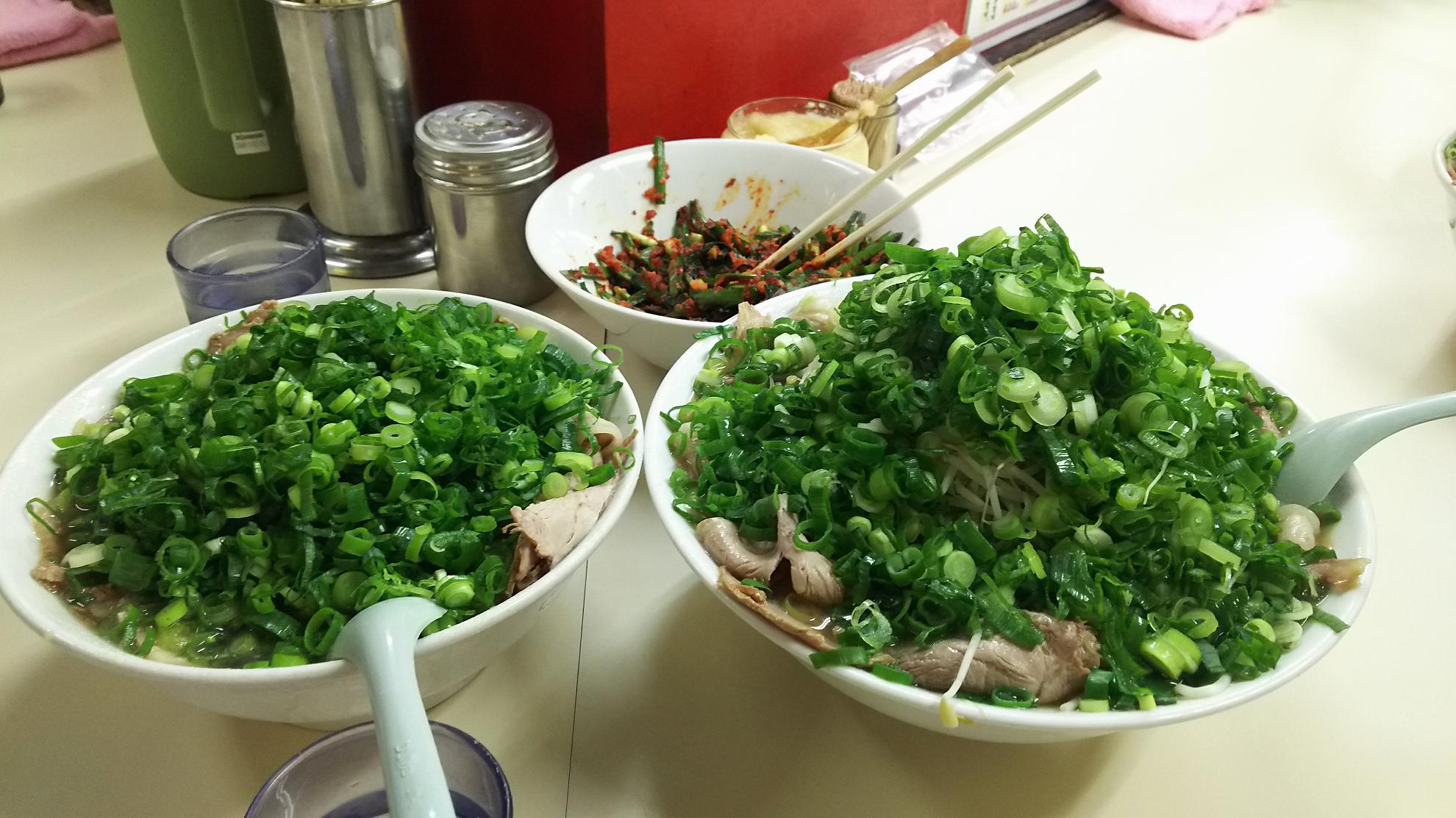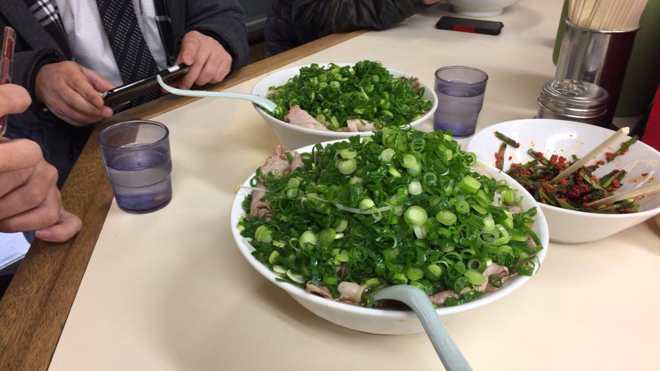 そして、ここに、ネギが、大量に、両手で、もりつけられます・・・
