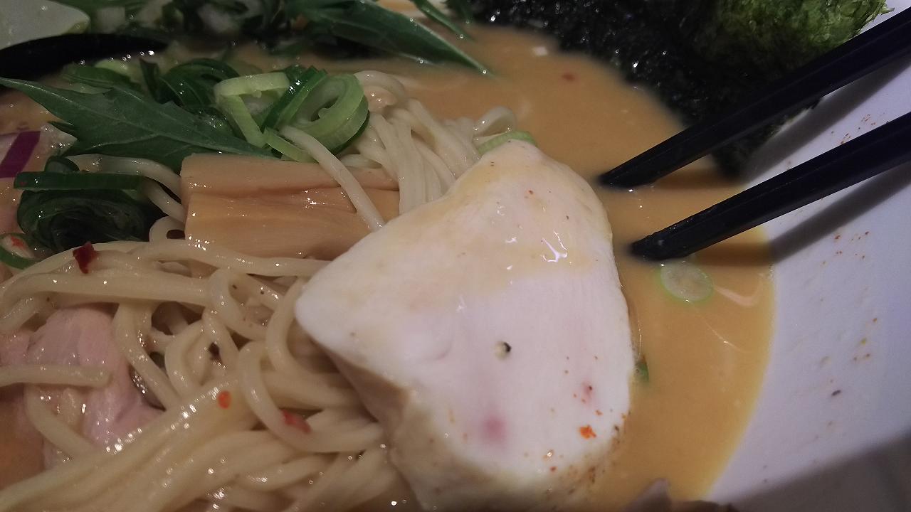 薄切りチャーシュー二枚と、レモン味のチキンが、また美味しい