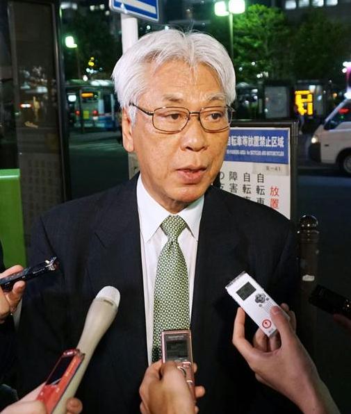 記者団の質問に答える民進党の小川敏夫参院議員会長=12日午後、東京都大田区