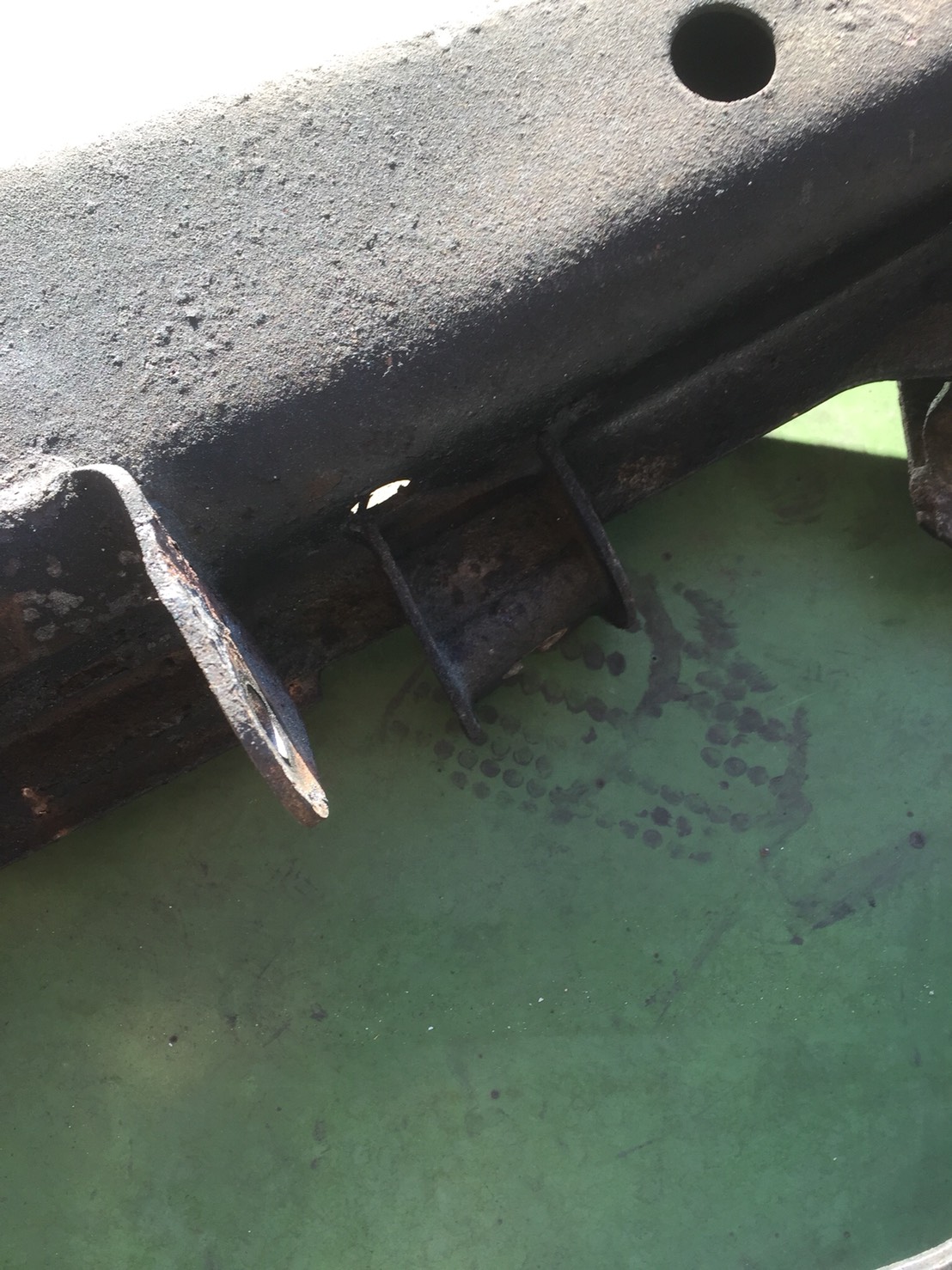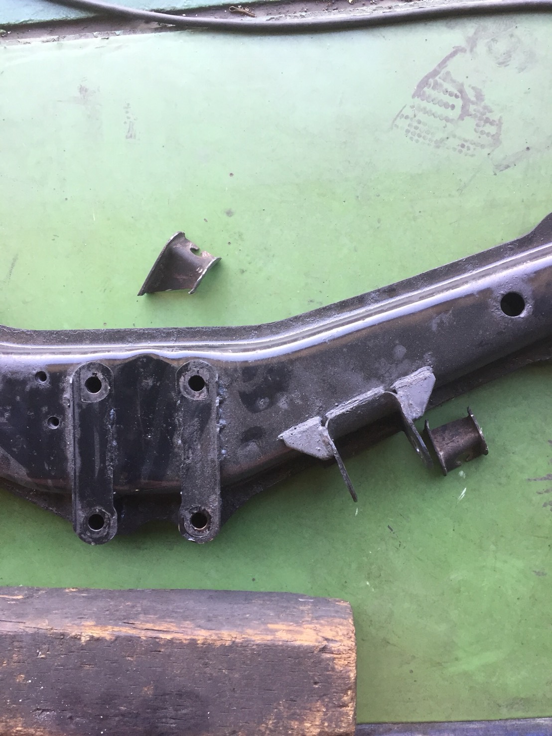 130ノーマルリヤメンバーに付いているサイドブレーキワイヤーの固定ステーを切り取ります