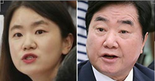 自由韓国党の申普羅院内報道官(左)と共に民主党の李錫玄議員(右)。(写真=中央フォト) 韓国野党の自由韓国党は7日、論評を通じて、最近与党要人が日本と米国を非難する一方で北朝鮮をかばうような発言をしたことに対して「この政権には北朝鮮報道官がなぜこんなにも多いのか」と批判した。