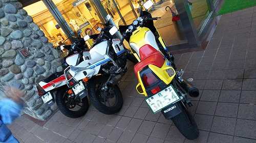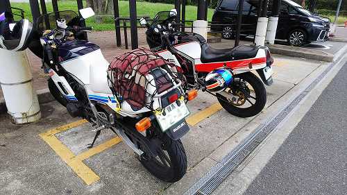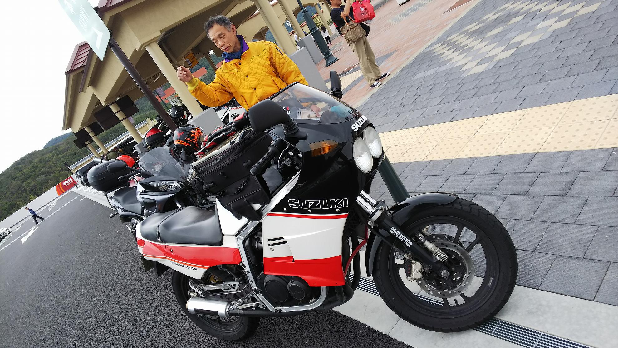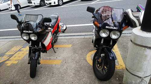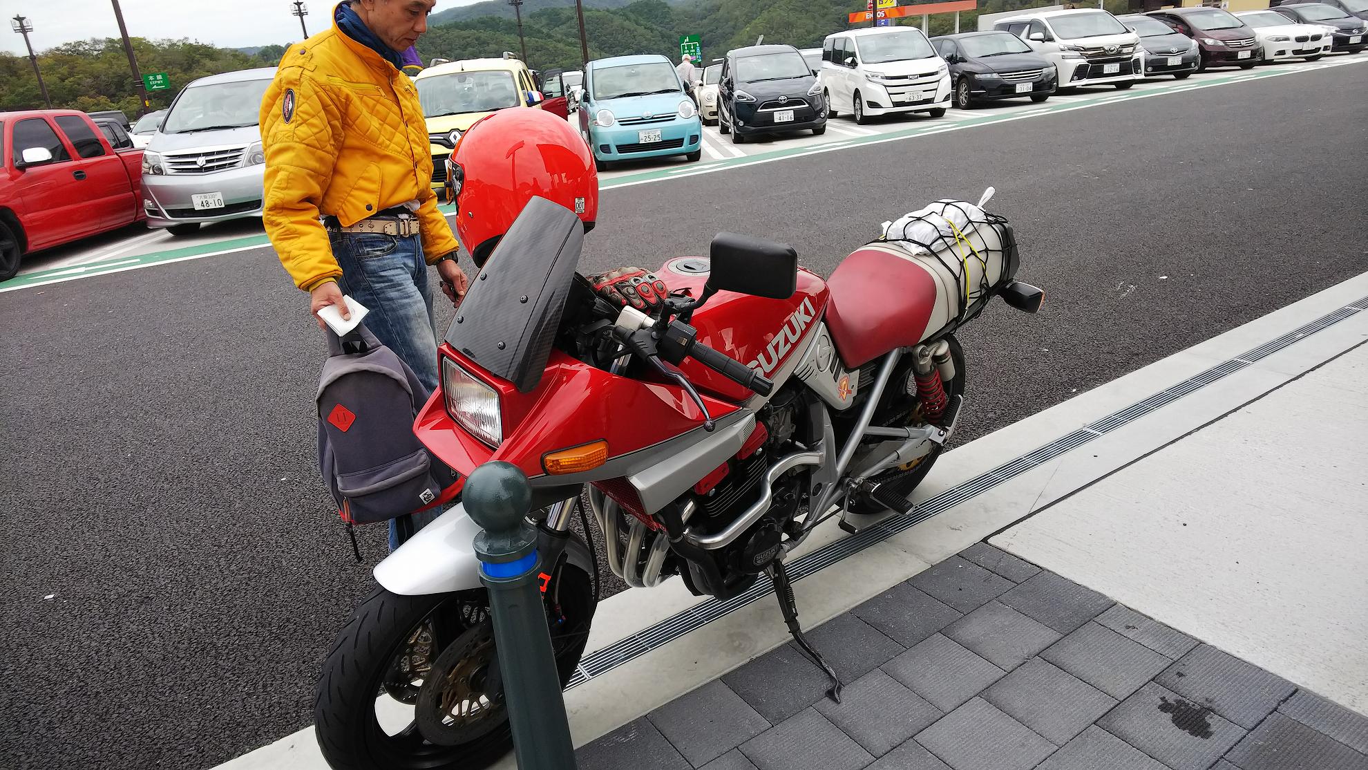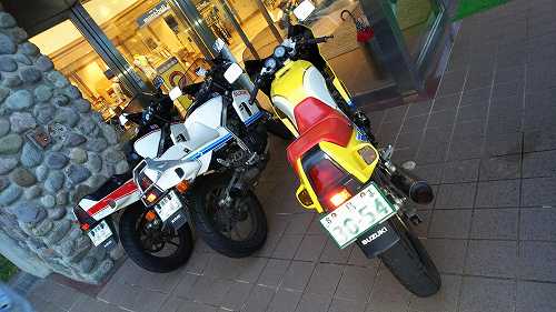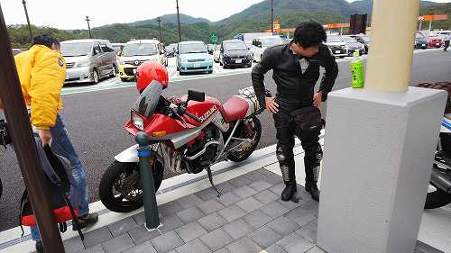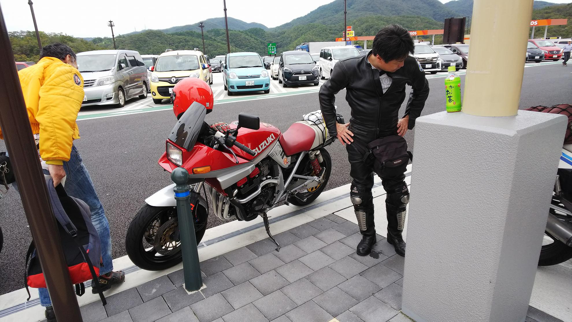 じゃあ、50㎞くらい先の加西で食べようかということになって、トイレだけ済まして、GSX-Rのところに戻ります。。
