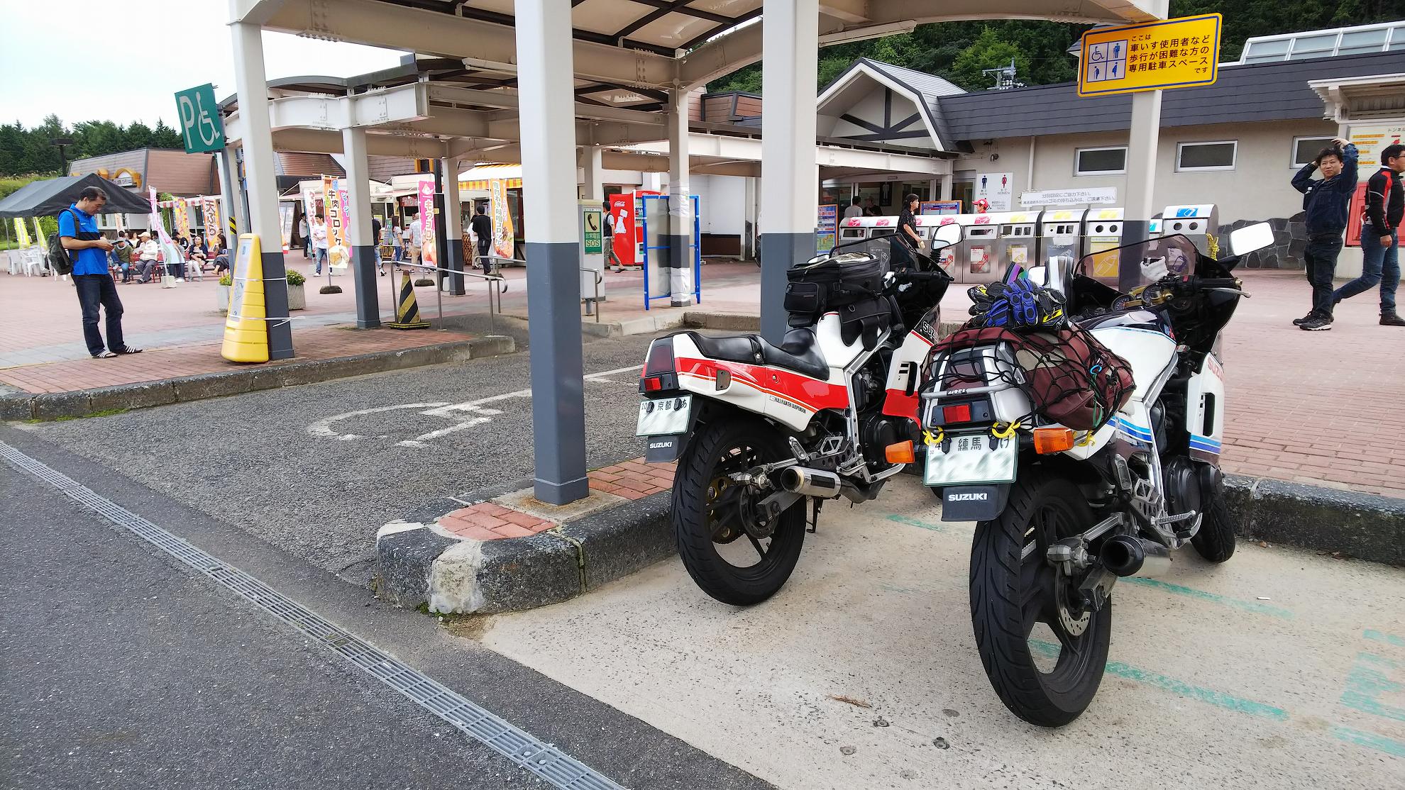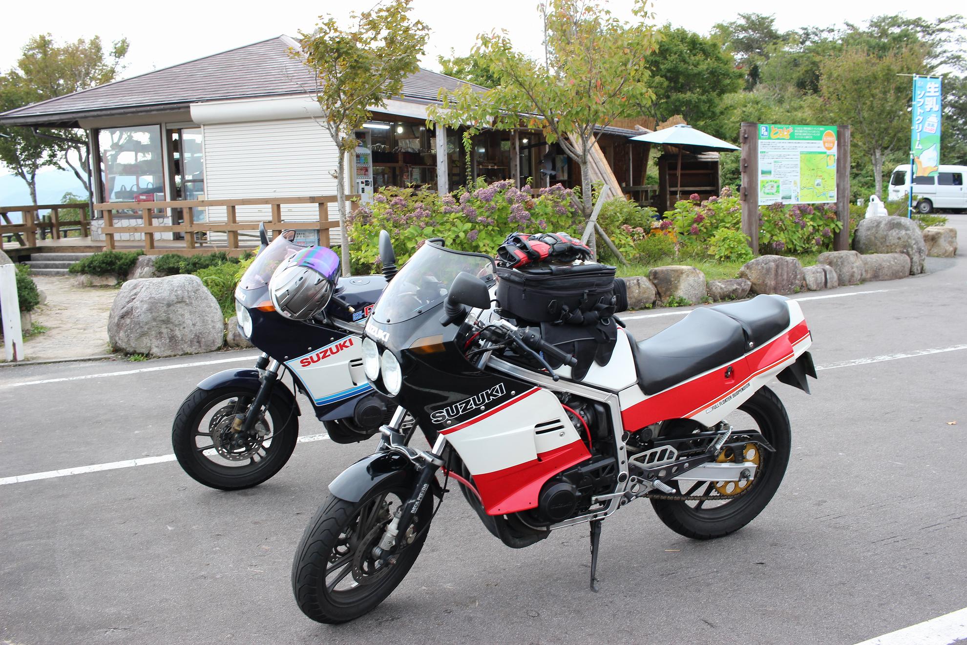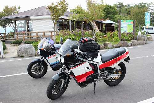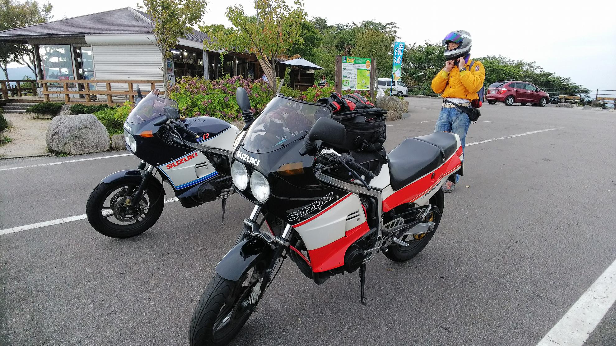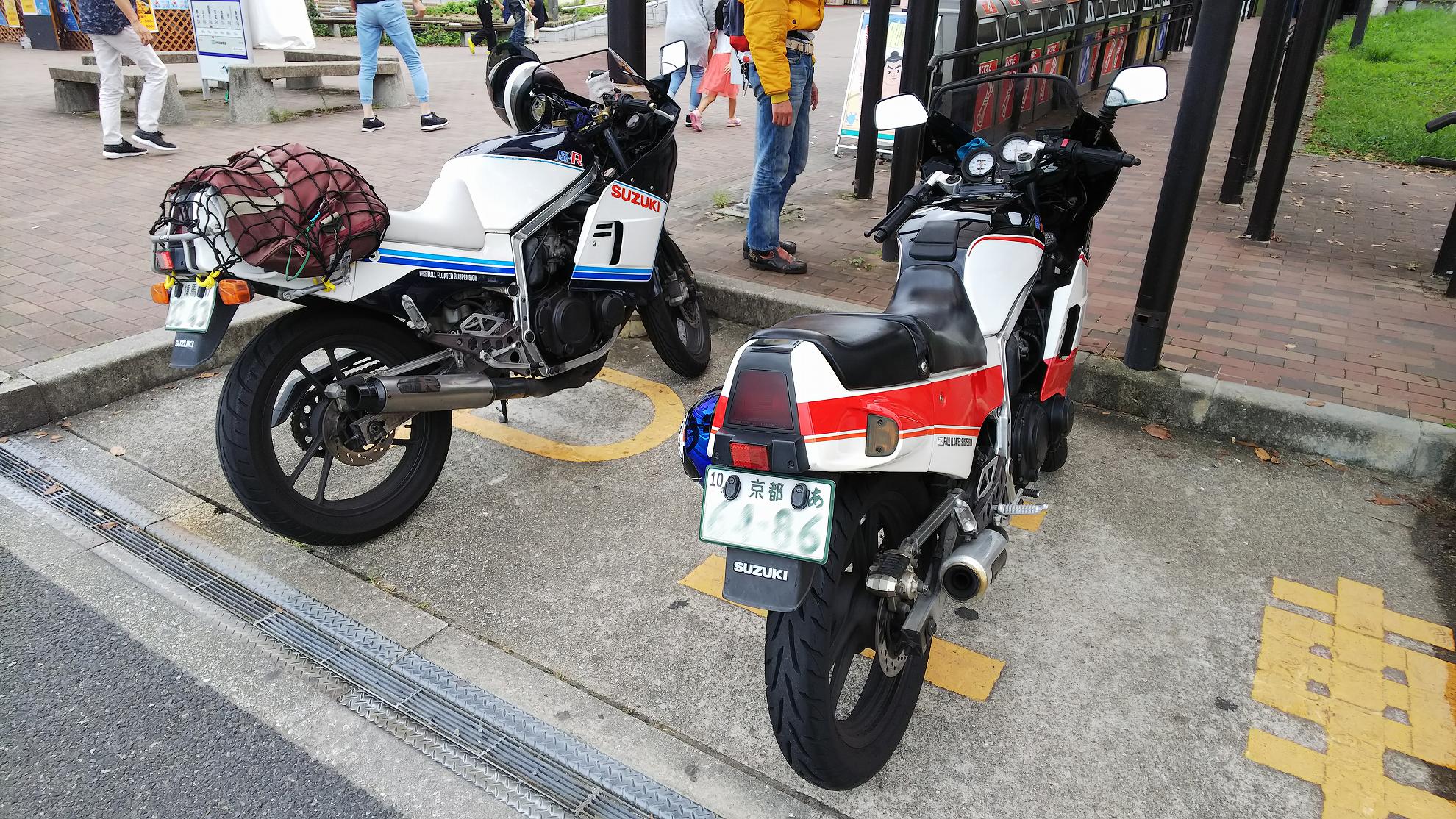 じゃあ、50㎞くらい先の加西で食べようかということになって、トイレだけ済まして、GSX-Rのところに戻ります。。