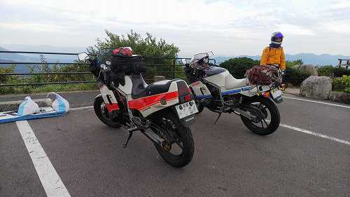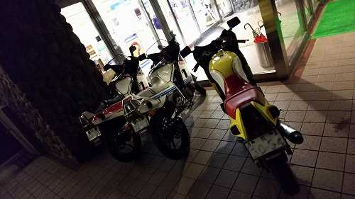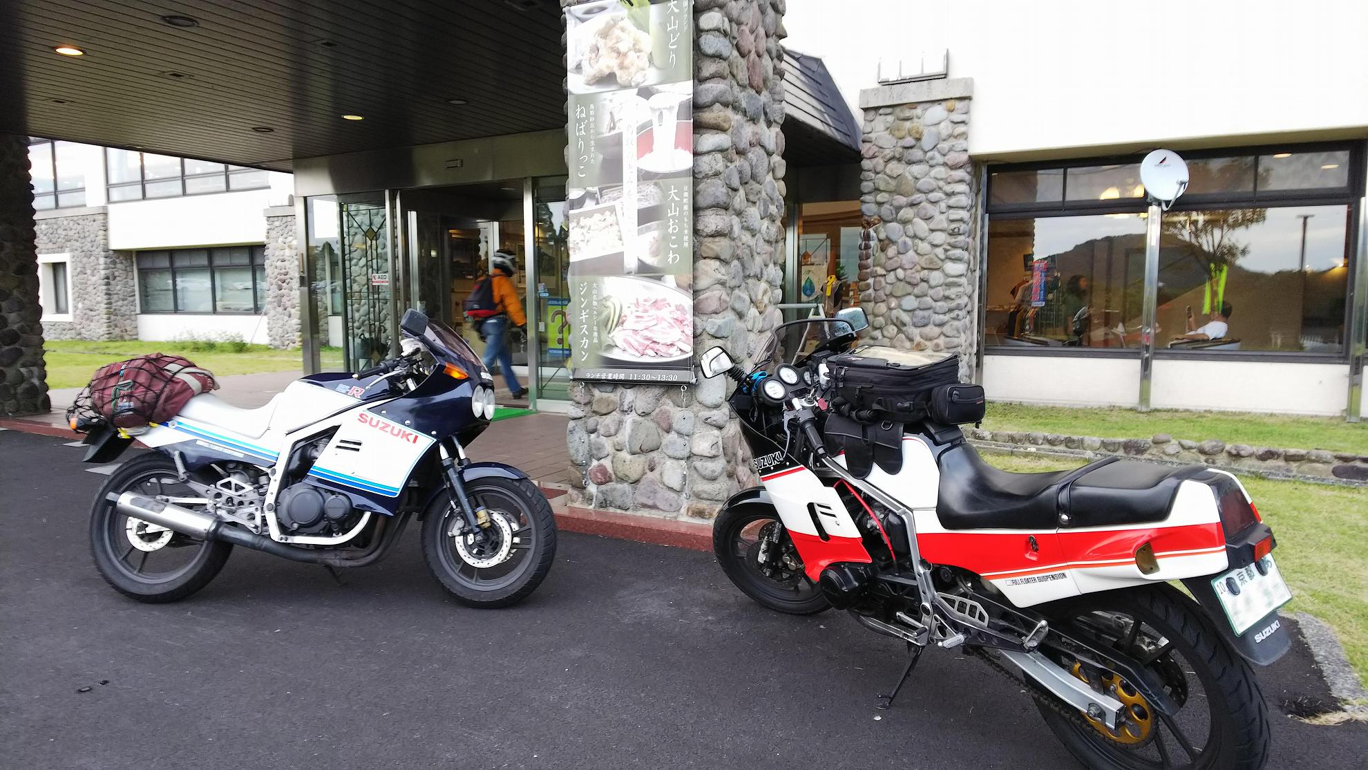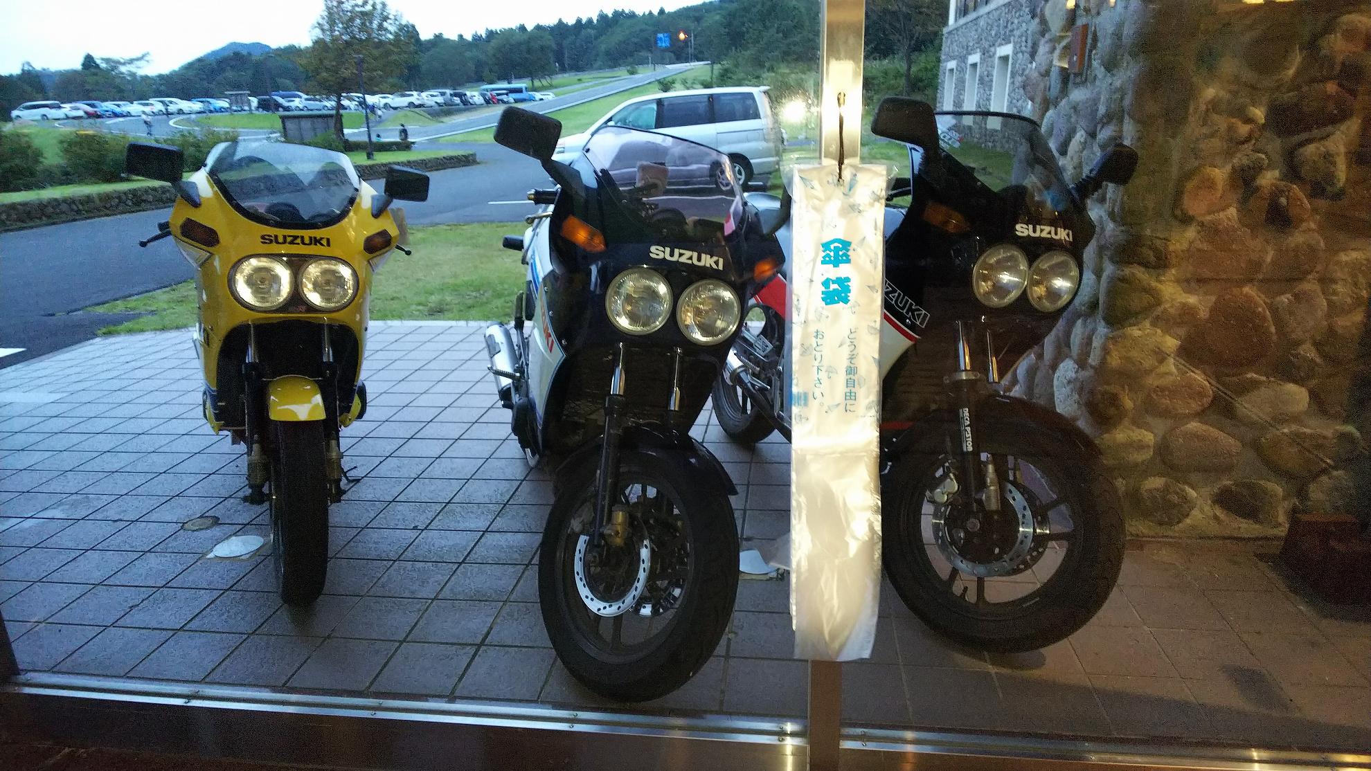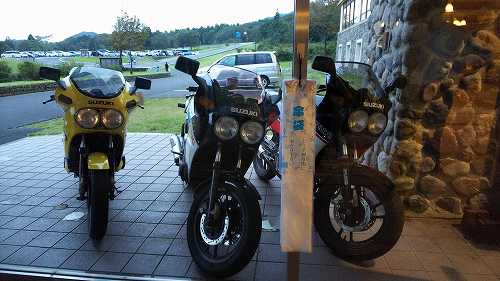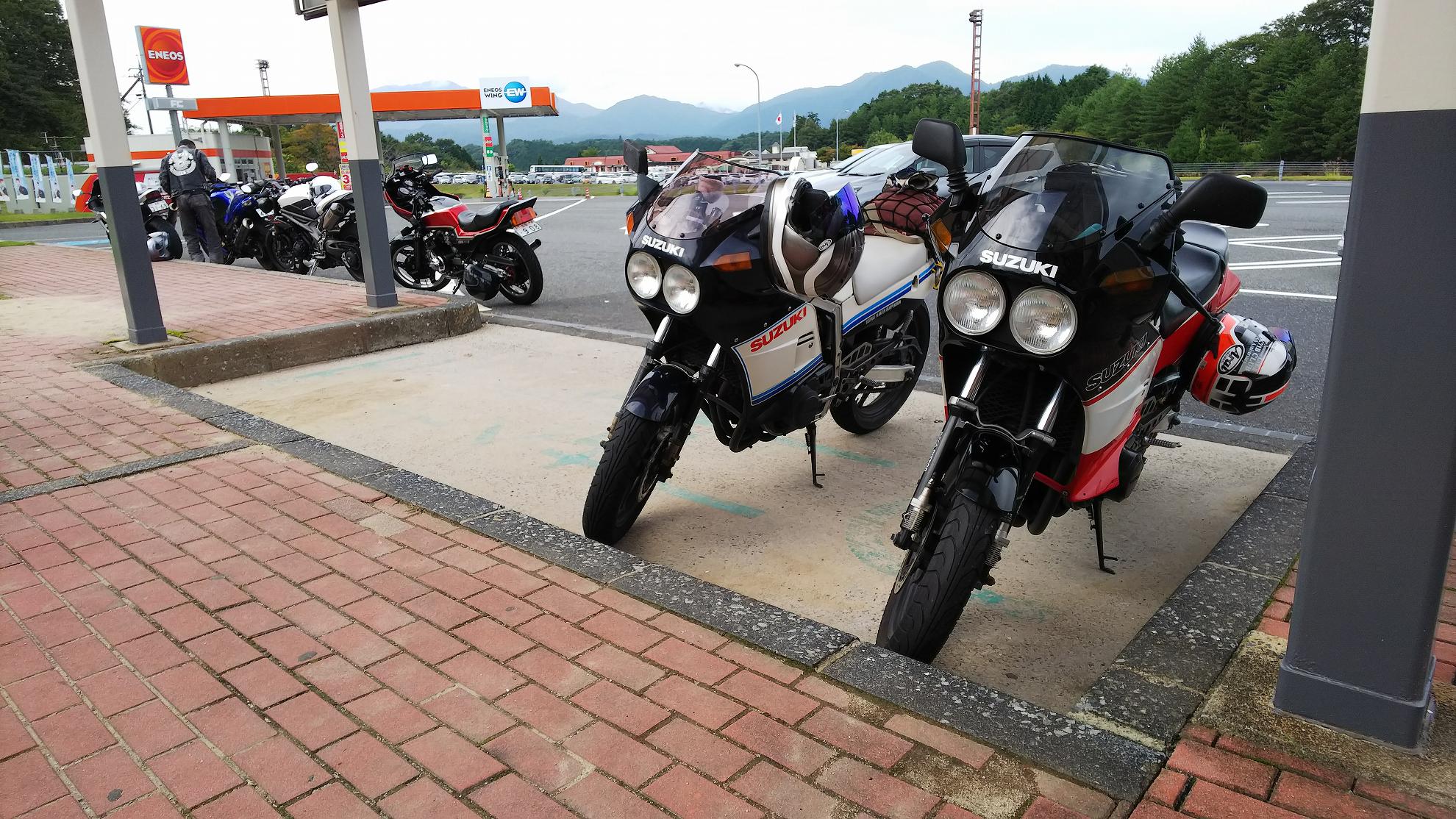 じゃあ、50㎞くらい先の加西で食べようかということになって、トイレだけ済まして、GSX-Rのところに戻ります。。