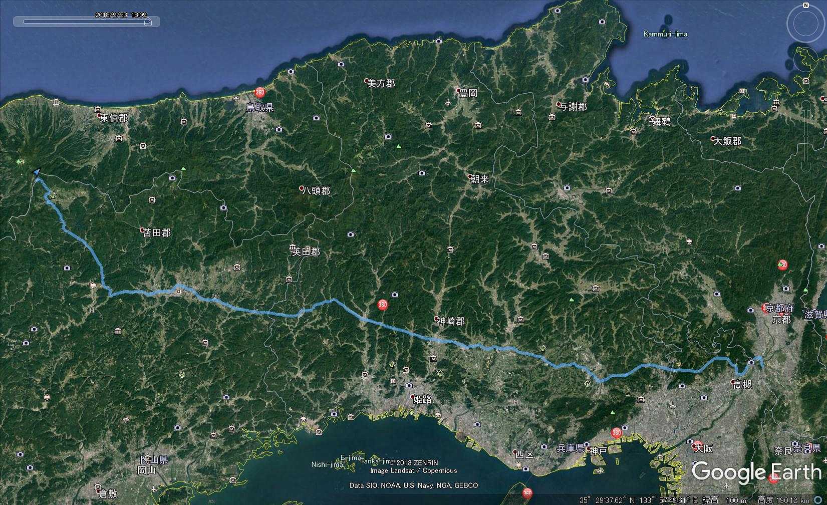 八幡から宝塚北まで50㎞、加西まで、さらに50㎞、そこから奥大山休暇村が150㎞です。