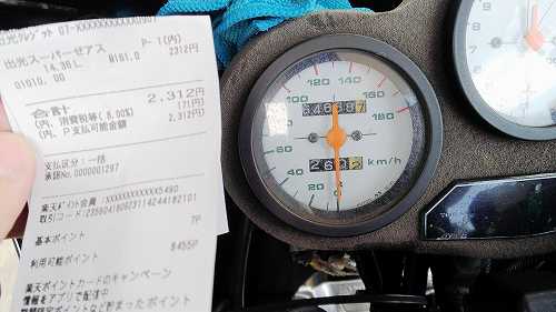 ガソリンを入れて、出発です。一型は300㎞は楽勝なんですが、二型は250kmくらいでリザーブになるので。。。