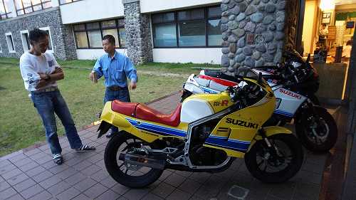 ですが、その前に、明るいうちに、としさんのGSX-Rを見に行こう!ってことで、一階に