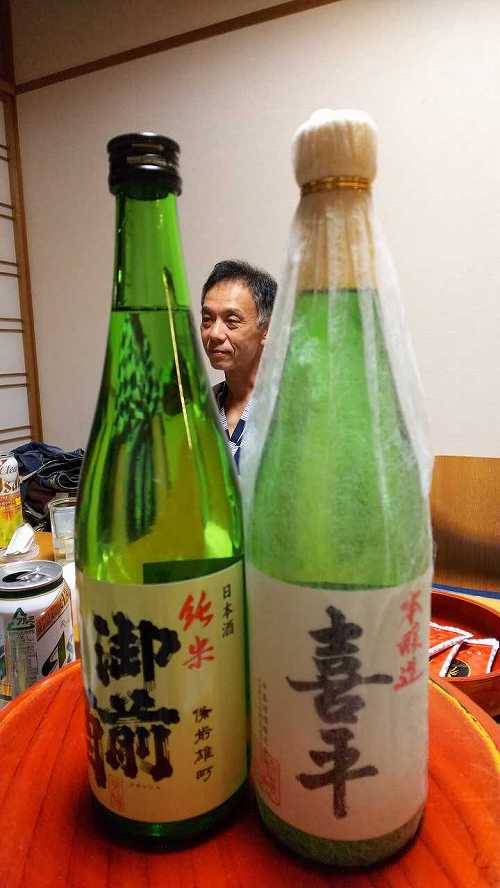 ビール飲んで、そのあとは、としさん差し入れの地酒、鷹勇!!
