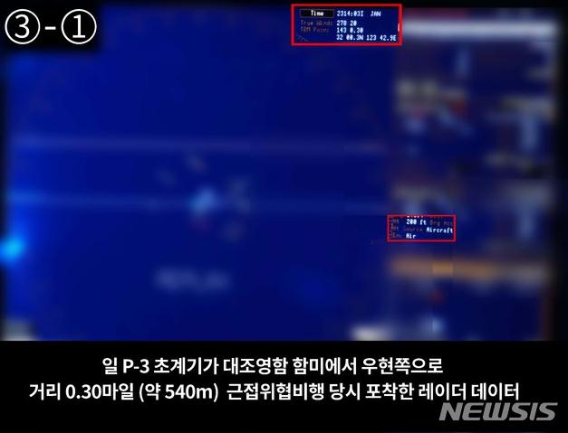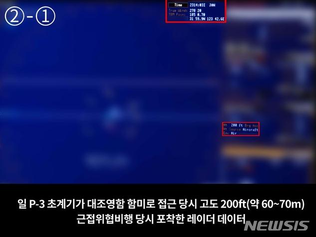 ただ、海自のP3C哨戒機とみられる航空機が写った画像には、海面が入っておらず、この画像からは「哨戒機は高度約60~70メートルまで接近した」という韓国側の主張が正しいことを立証できない。しかし、国防省は赤外線画像で証明できるとしている。日本は「高度150メートル以上を確保していた」(岩屋毅防衛相)としており、双方の主張は食い違っている。