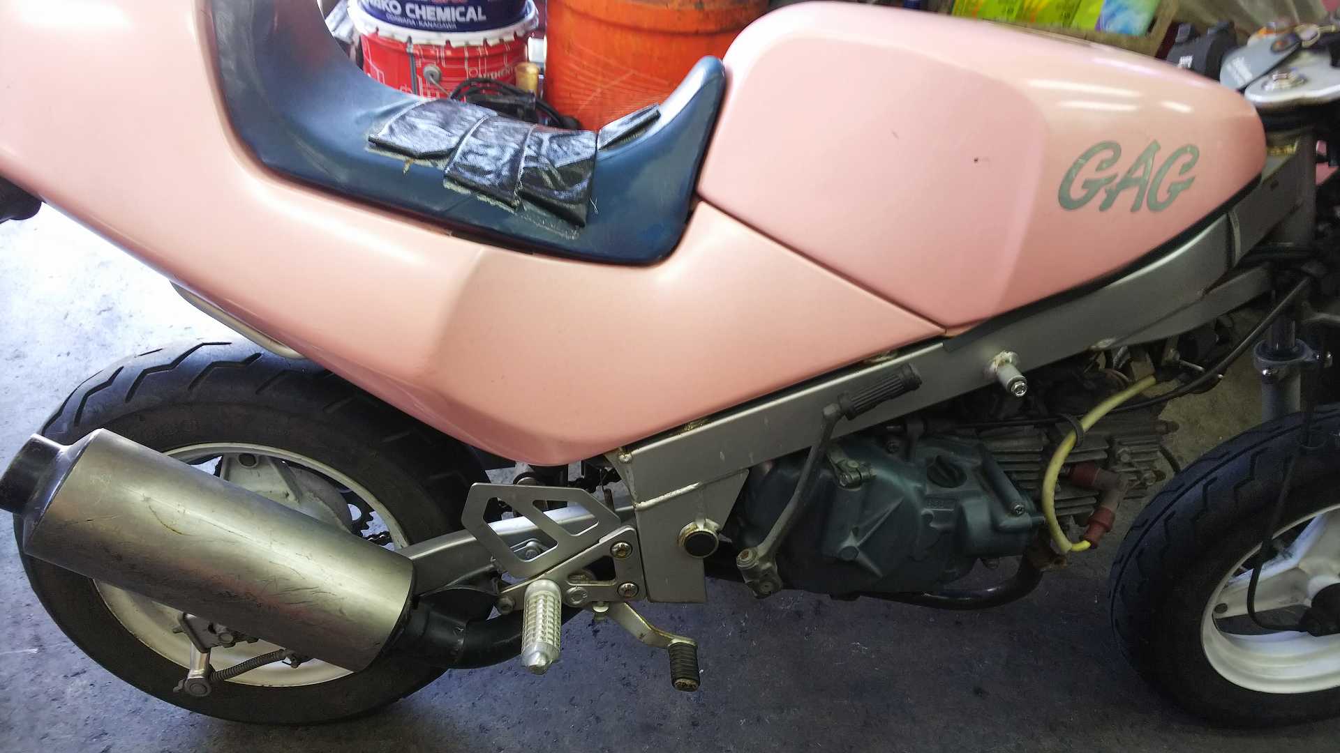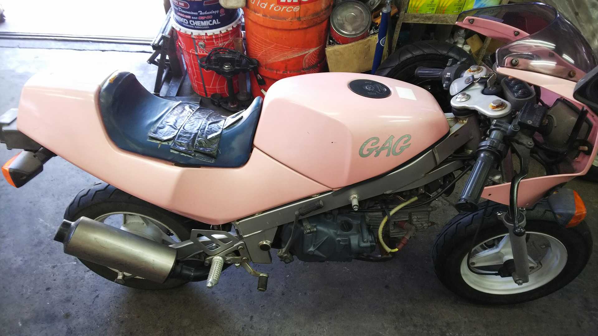 このピンクのGAGは、タンクが錆びてて、エンジンかからない状態だと
