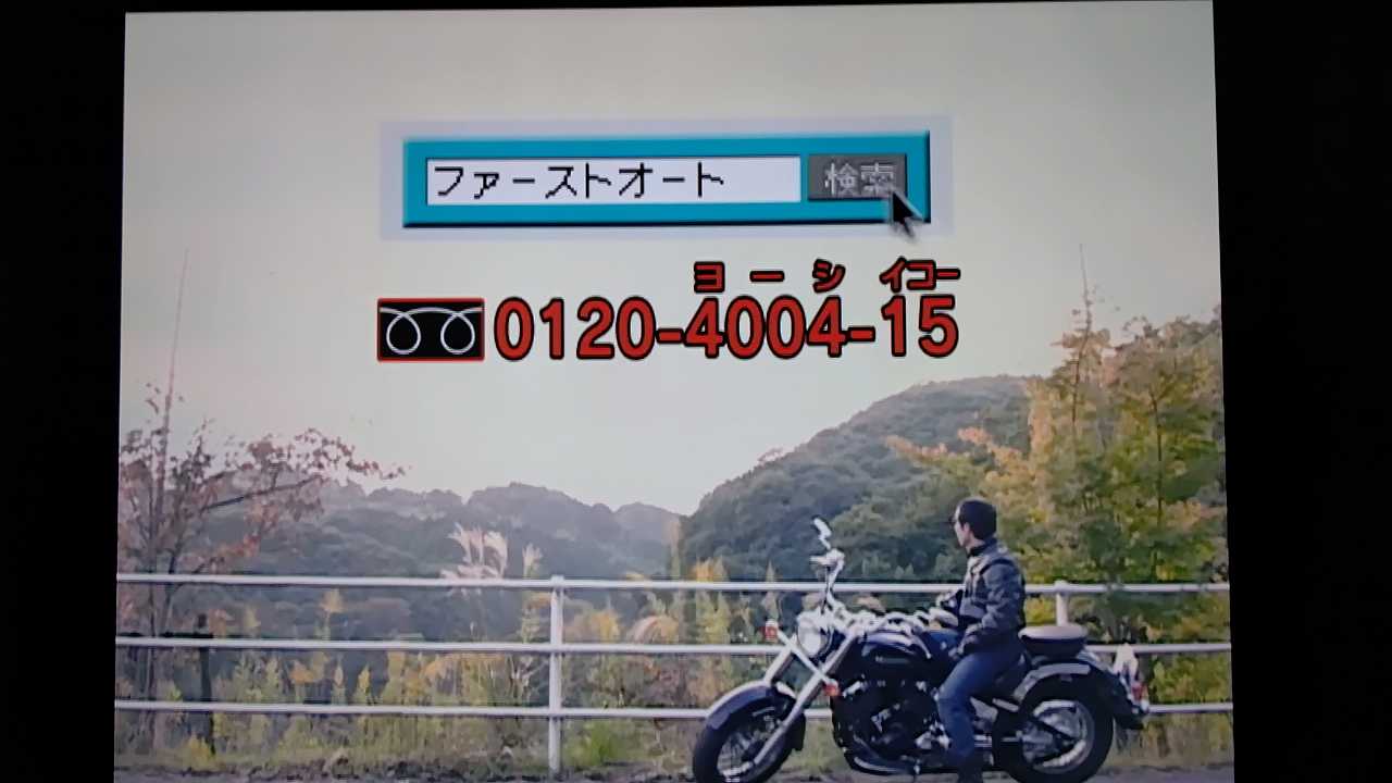 ずっとスポンサーをされてる、ファーストオートさんのCM、これも、昔から変わってなくて、いまだに、アスペクトが4:3だし、各支店に並んでるバイクが、なかなか懐かしい。。。