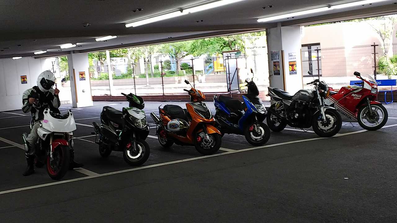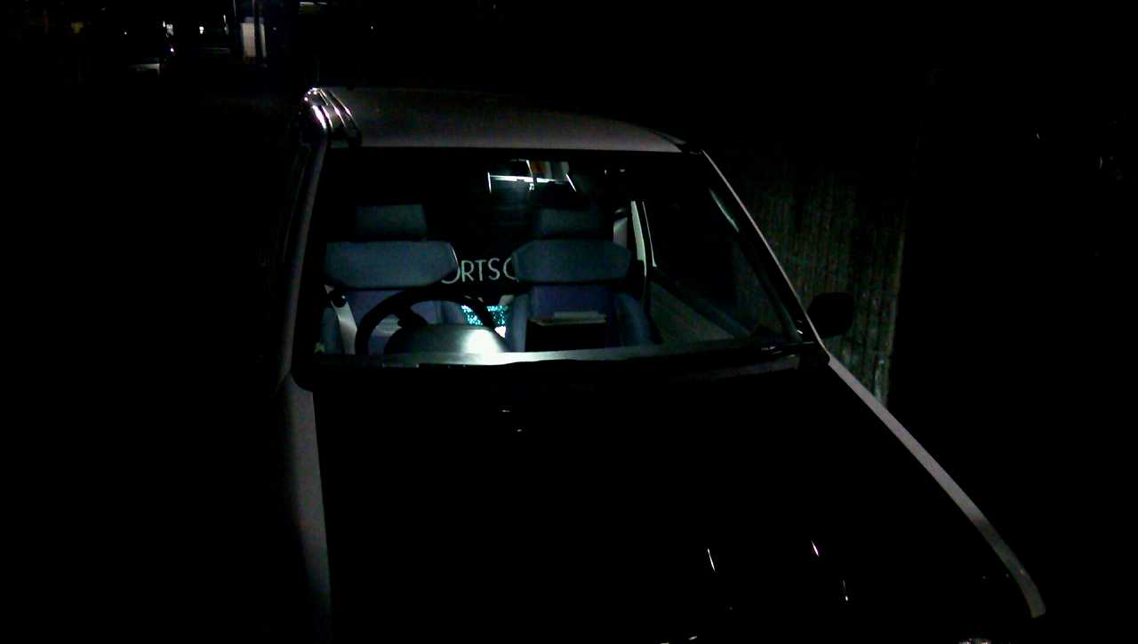 アスプロの駐車場で。。。さきほどのブルーのやつつけてみて。。。けっこう暗いのにやっぱり意味ないくらい暗い。。。