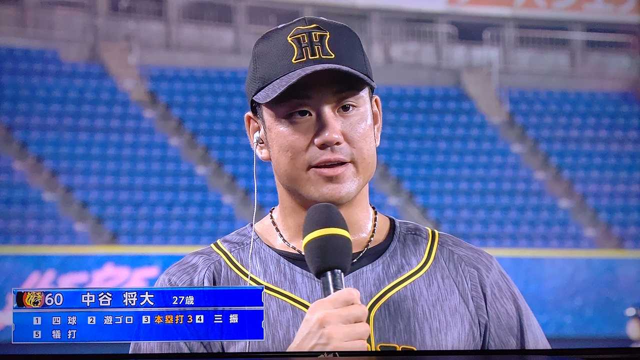 ヒーローインタビューは、逆転3ランの中谷将大外野手。「(初回の失策で)本当にヤギ(青柳)に迷惑をかけて、ヤギに『取り返す』と言ってたので、取り返せて良かった。(プロ初の2番について)打順は全然関係ない。しっかり準備して来たので、結果を残す事だけ考えて、後悔の無いようプレーしようと思っていた。(出遅れて)ファームにいた時には北川さんを始め、コーチの方々が色々考えながらやってくれたので感謝しかなかったし、そういう感謝に結果で返す事が出来て良かった」と、殊勝に話した。