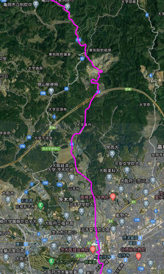 そして、昔枚方に住んでて鳥取に通ってたときに使った、茨木に抜ける道。。。