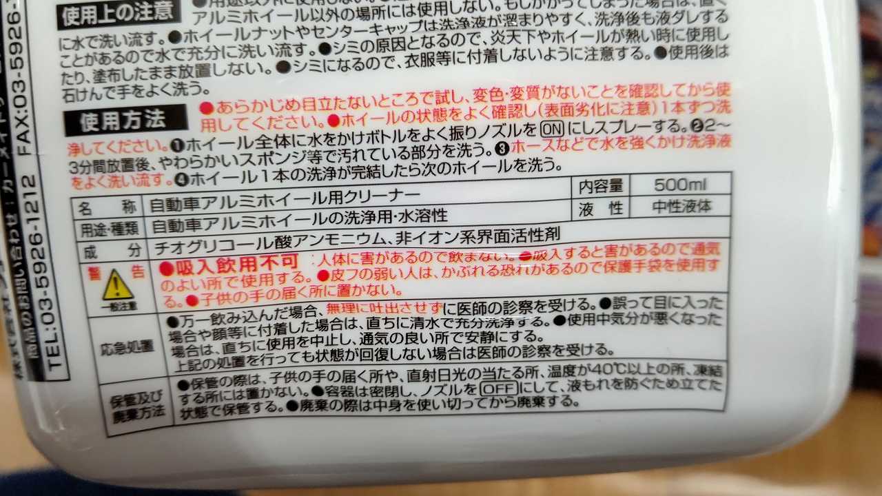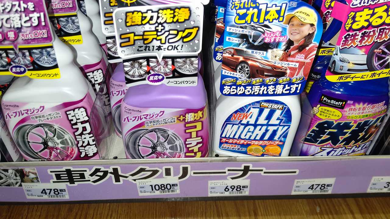 比較動画にも書いてあったが、ネジザウルスの錆び落とし、チオグリコール酸アンモニウムで、昔からあった鉄粉やらが紫色になるホイールクリーナーとパーマ液みたいな匂いも同じ