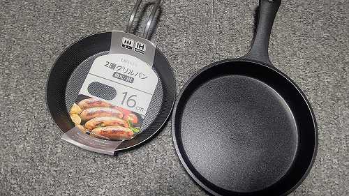あと、16㎝のエンボスのステン、アルミのフライパンがあったので、昼にケイヨーD2でスキレット買ったけど、、、