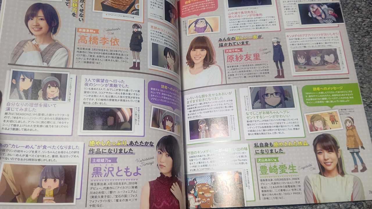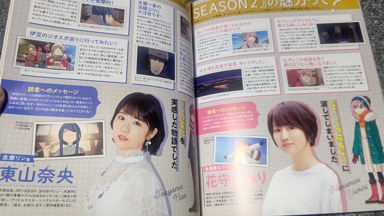 原作コミックス『ゆるキャン△』の作者である、あfろ先生と、声優の花守ゆみりさん、東山奈央さん、原紗友里さん、豊崎愛生さん、高橋李依さん、黒沢ともよさんによる、本誌独占インタビューを掲載しています。あfろ先生には、『ゆるキャン△』誕生のきっかけや、お気に入りのキャラクター、好きなキャンプ場まで教えていただきました! 声優キャストのみなさんには、『ゆるキャン△ SEASON2』の魅力や、キャラクターの成長ぶりに涙したというお話をうかがい、その想いをたっぷり紹介しています!