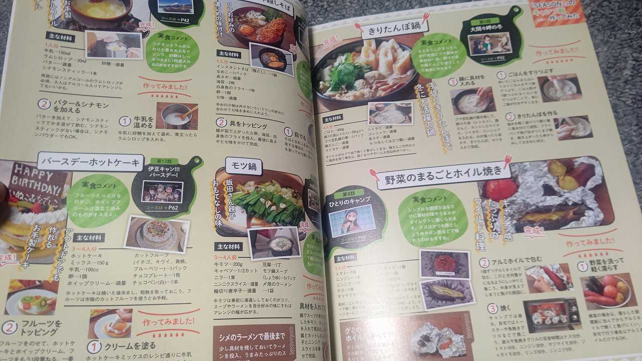 『ゆるキャン△』の魅力のひとつとして、野クル(野外活動サークル)による本格的なキャンプシーンが挙げられます。本書では、アニメに出てくるおいしそうなキャンプ飯を再現し、実食コメント付きで材料やレシピを紹介しています。さらに、なでしこやリンたちが実際に使っているキャンプギアもご紹介。初心者にも使いやすい、実用性の高い寝袋や椅子、焚き火グッズを掲載しているので、キャンプデビューにもぴったりです。『ゆるキャン△』を見てキャンプを始めたくなった人にもうれしい内容となっています。