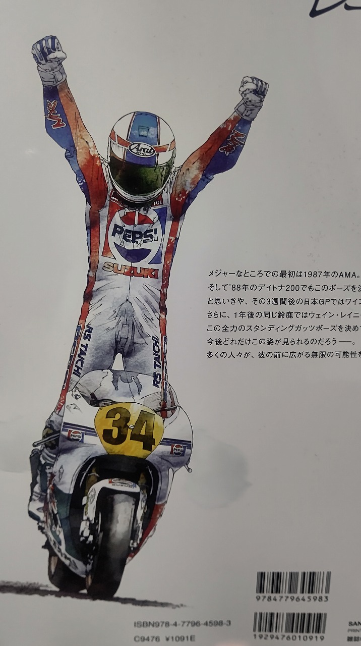 その後、鈴鹿8耐に帰って来たシュワンツに、Tシャツや本、タペストリー、たくさんサインもらい家宝になっております