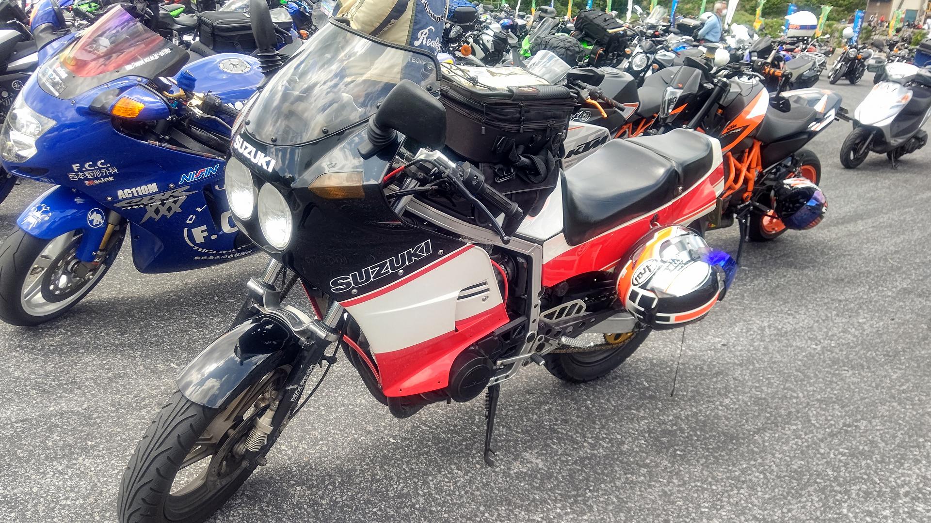 その次の年のSUZUKI MEETINGで、GK71B CLUBのブース前で週刊バイクTVが撮影されてて、それで、番組の存在を知ったのでした