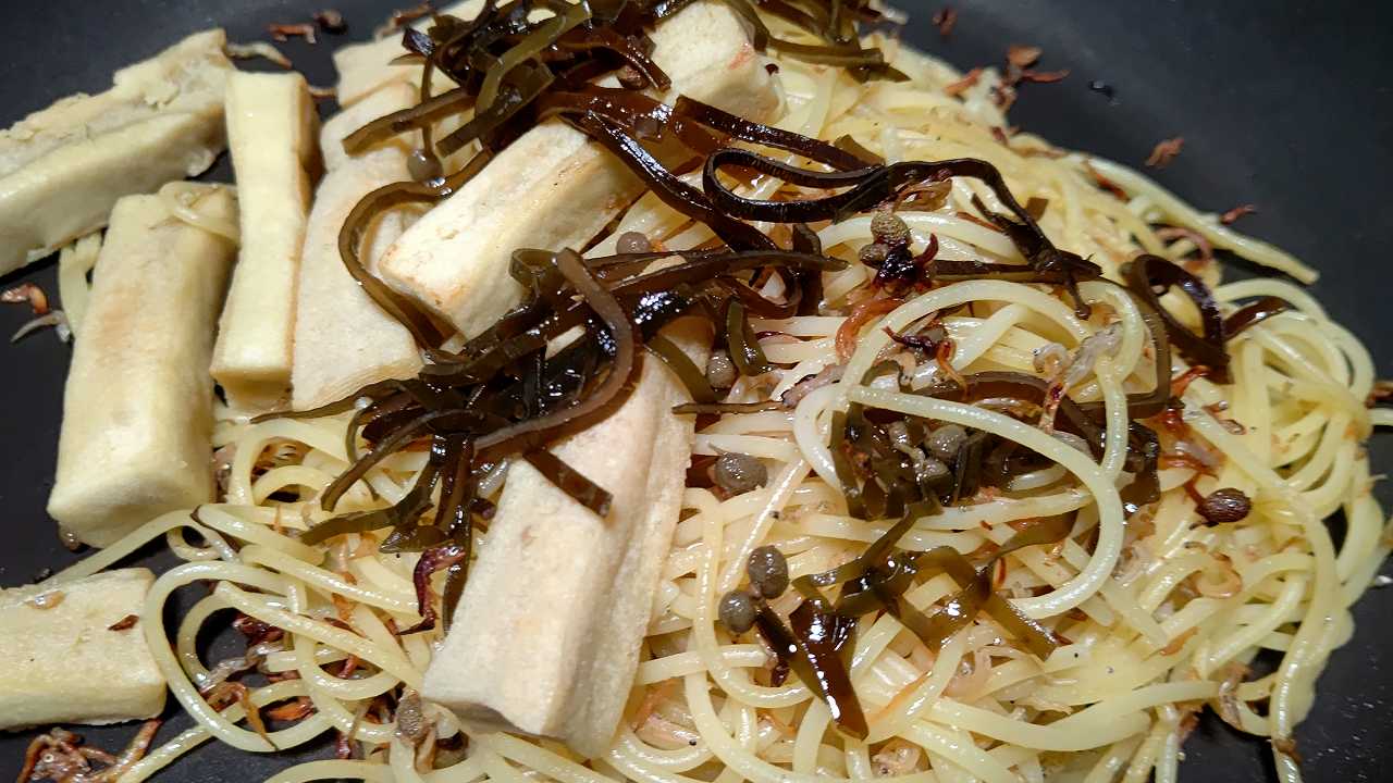 昼飯は、山椒昆布と、ちりめん山椒のパスタ