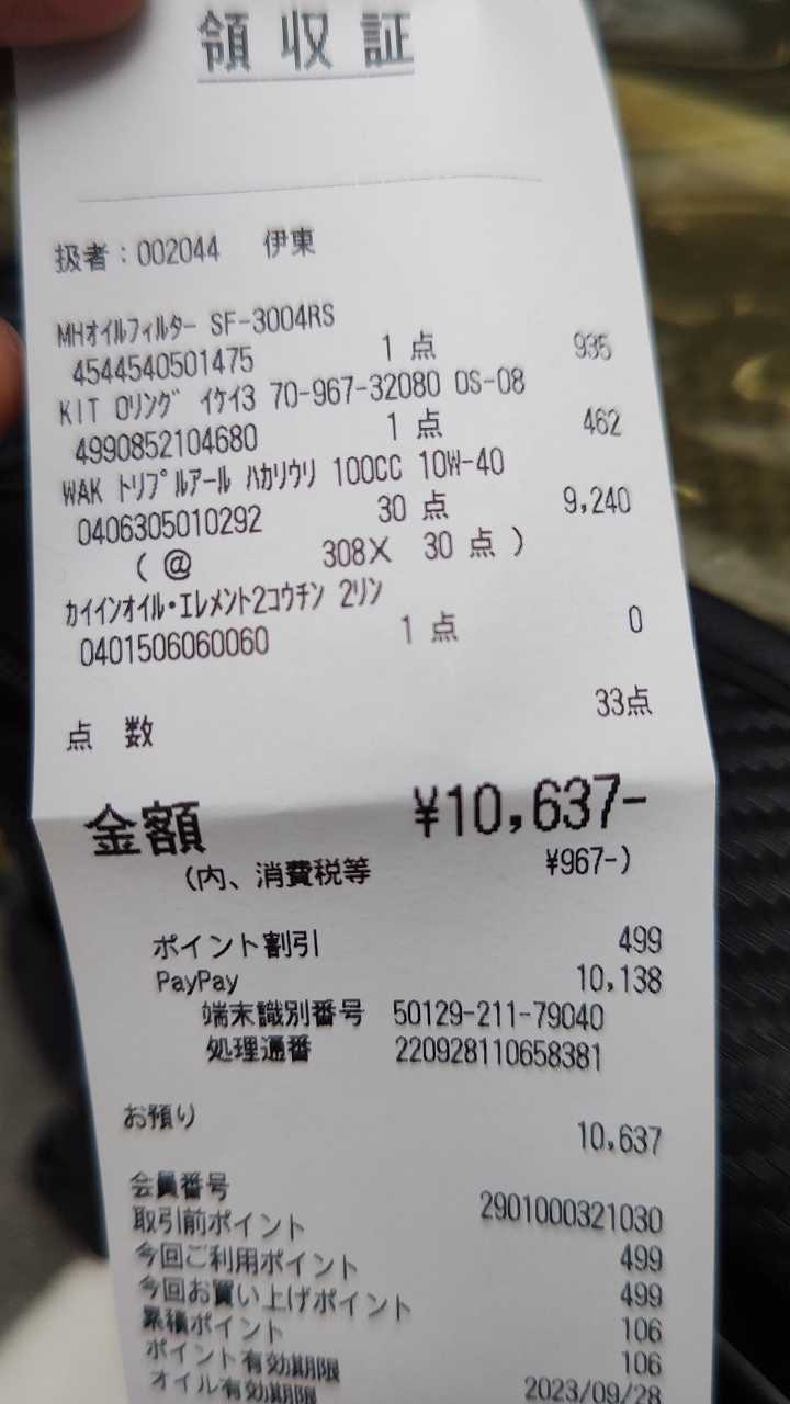 前に、オイル交換したのは