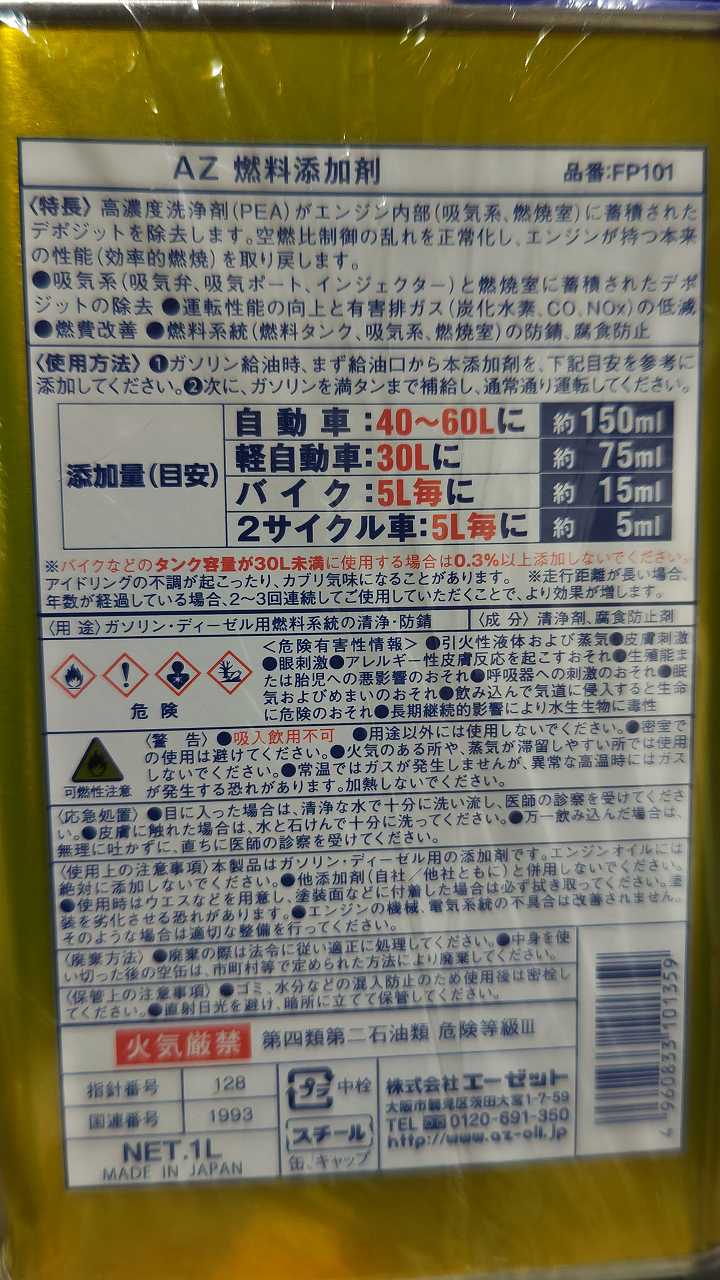 AZ(エーゼット) 燃料添加剤 1L FCR-062 ガソリン添加剤 ディーゼル添加剤 【中型車6~7台分】FP101 amazonで購入