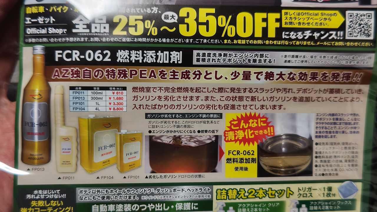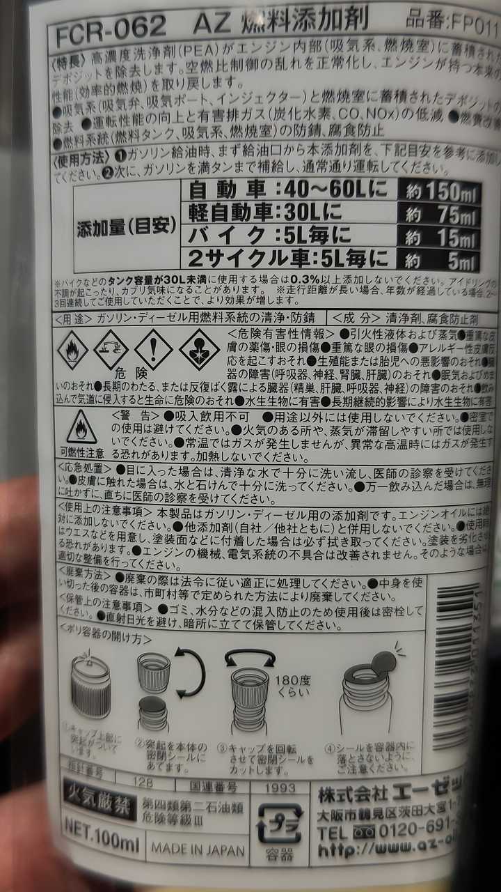 AZ(エーゼット) 燃料添加剤 FCR-062 FP011 100ml amazonで購入