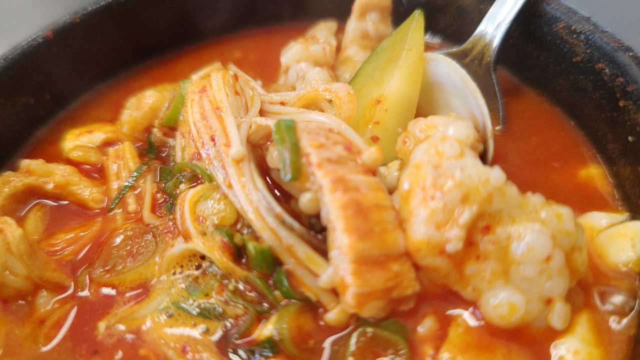 May 20, 2022 樟葉 男山 来来家 ホルモンスンドゥブ(あさり入り) 韓国かぼちゃチヂミ
