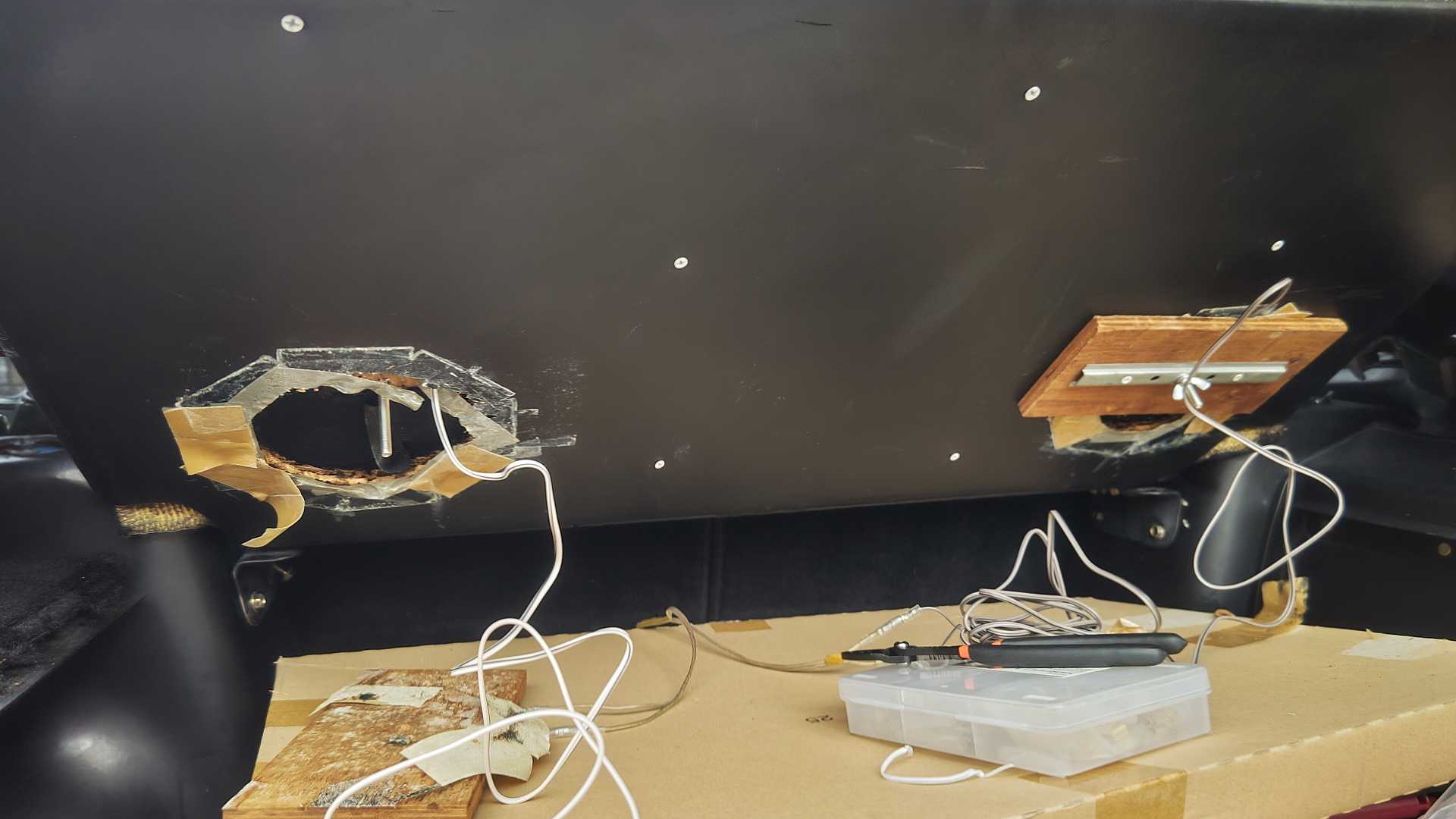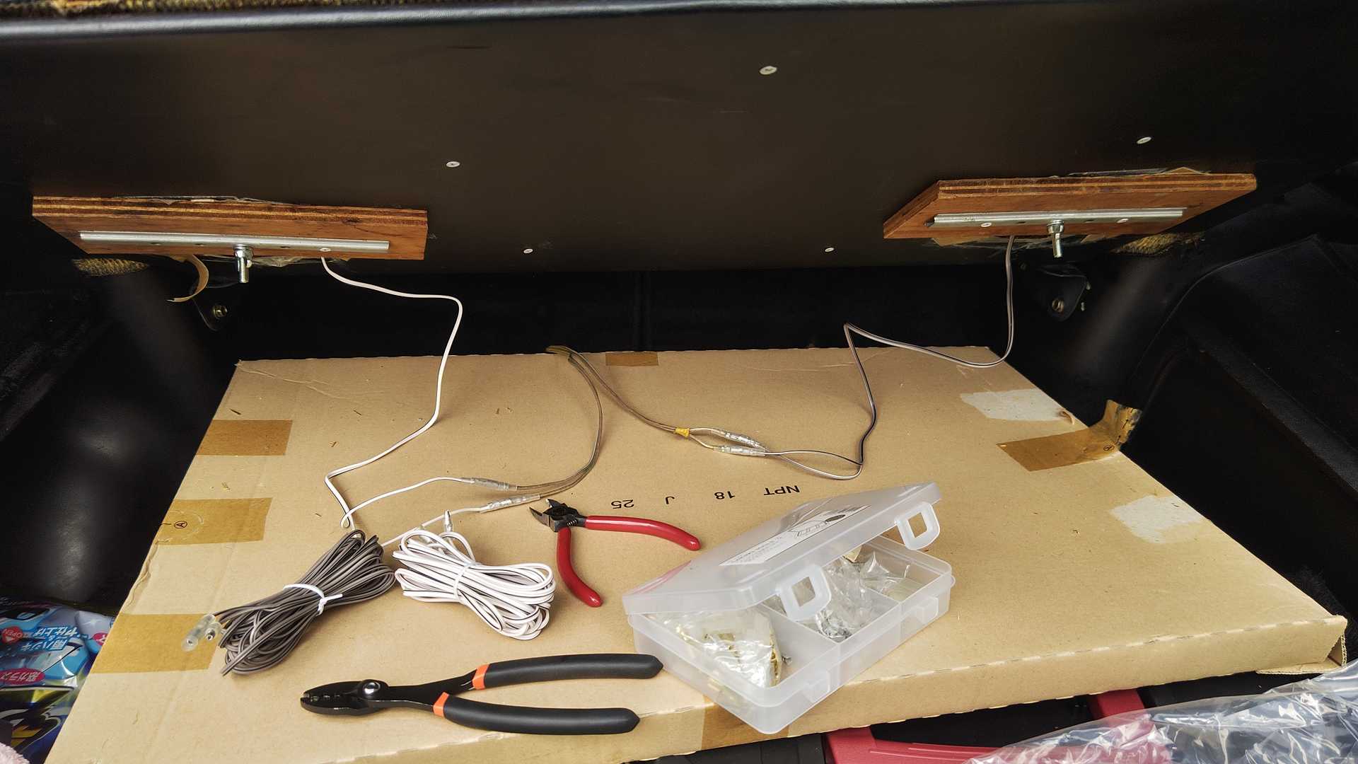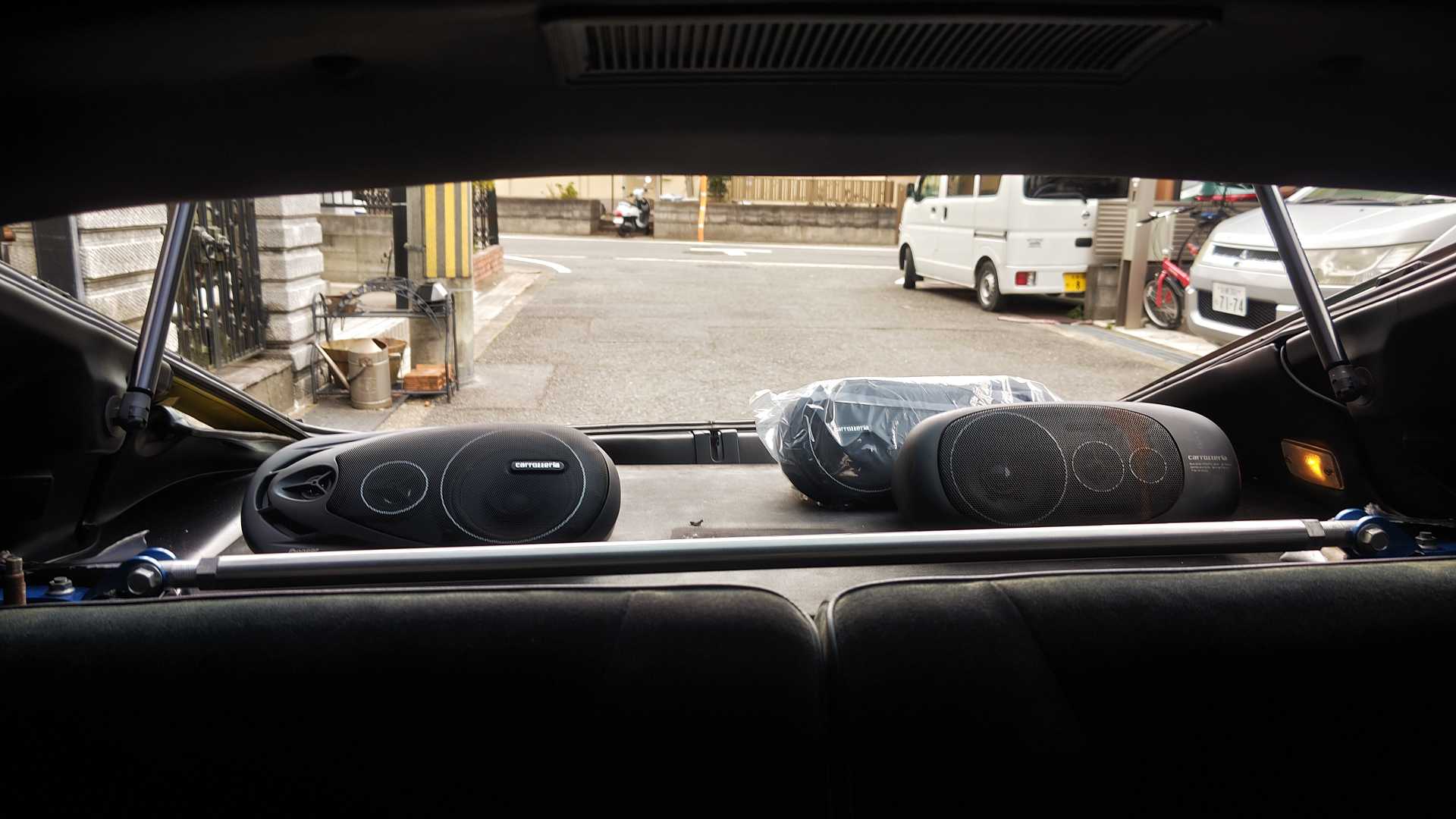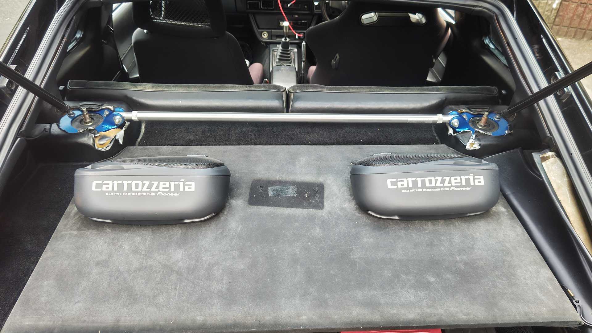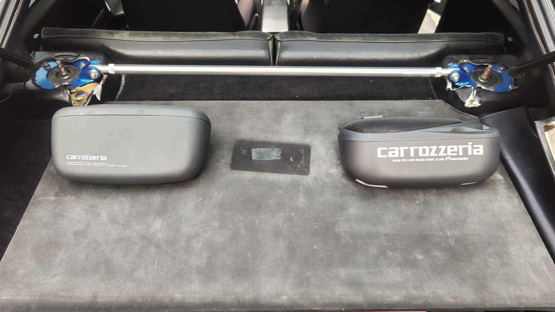 うちのも、もともと埋め込みのスピーカーついてたようで、穴開いてて、そこに、トノカバーのサイズのコンパネ切って、黒い布被せて、上に載せて