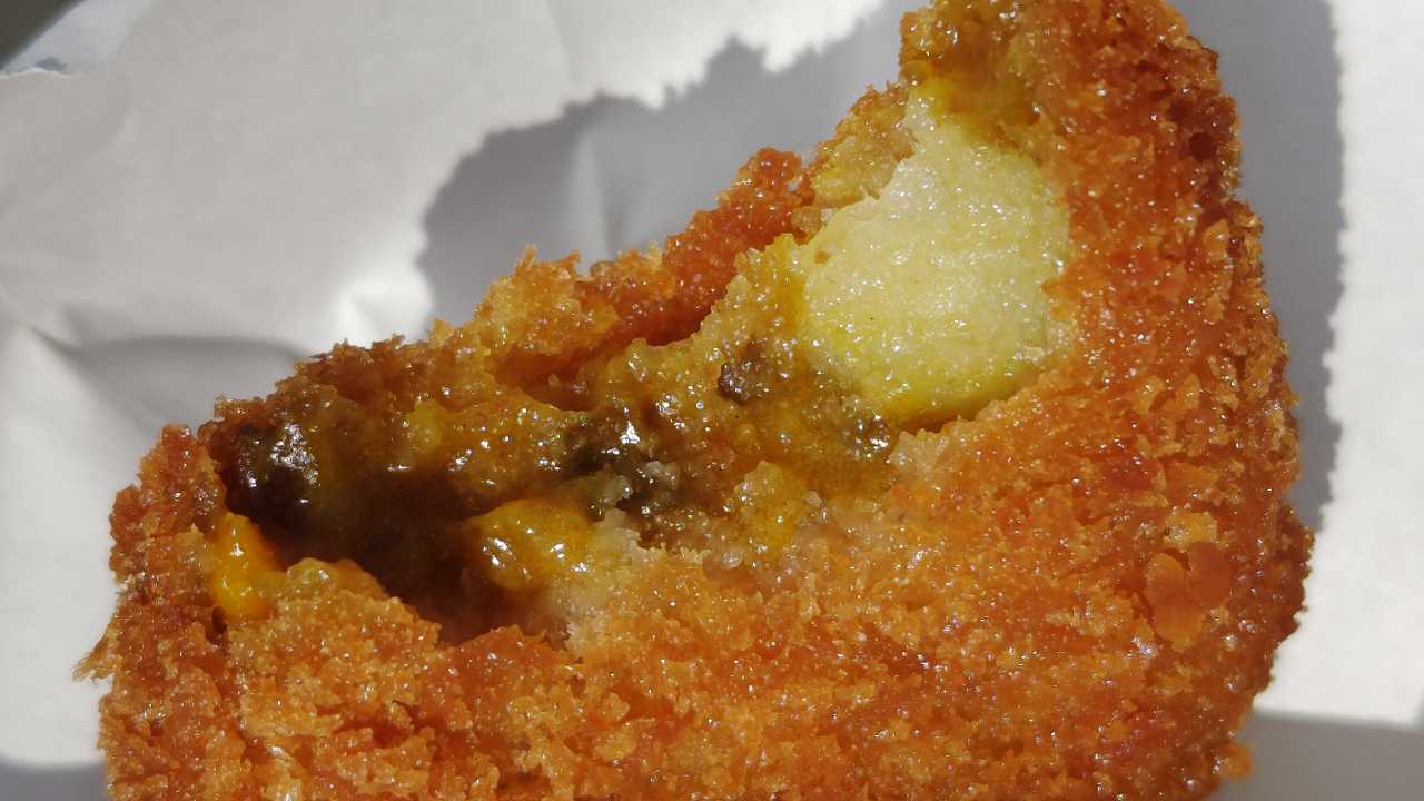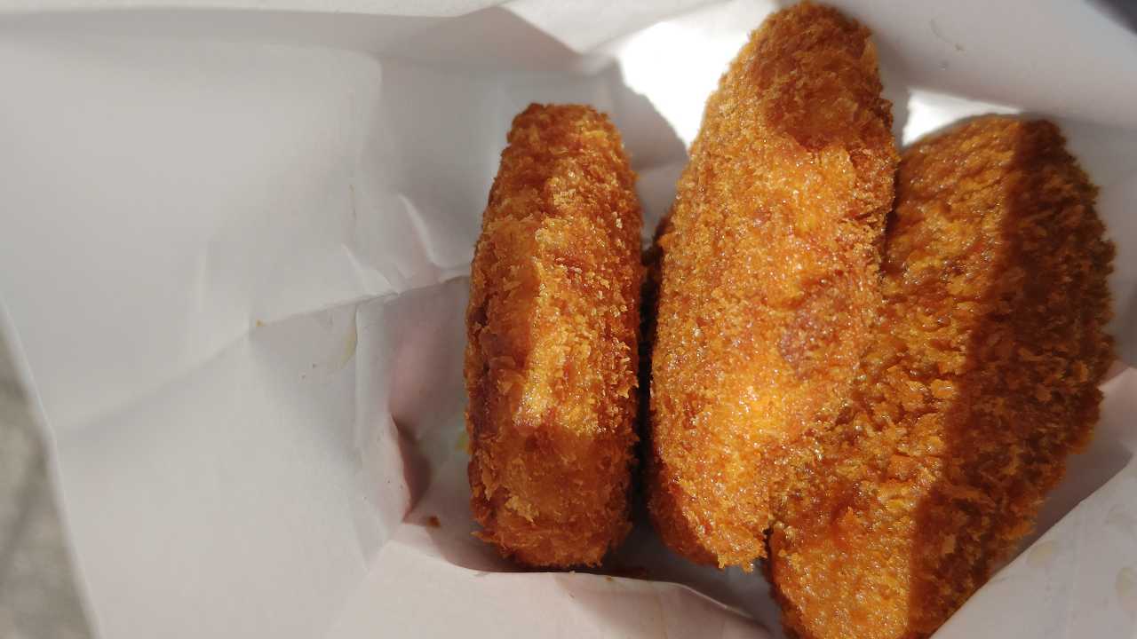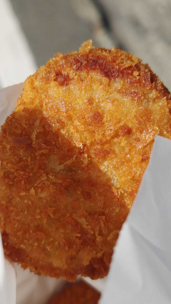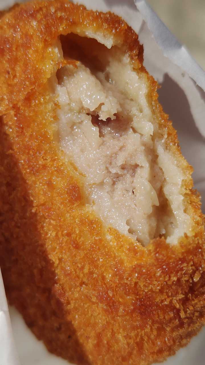 カレーコロッケは、混ぜ合わされてるのではなく、カレーパンのような感じになってます。ルーは甘めで、柔らかい感じです。これも美味しい